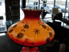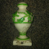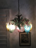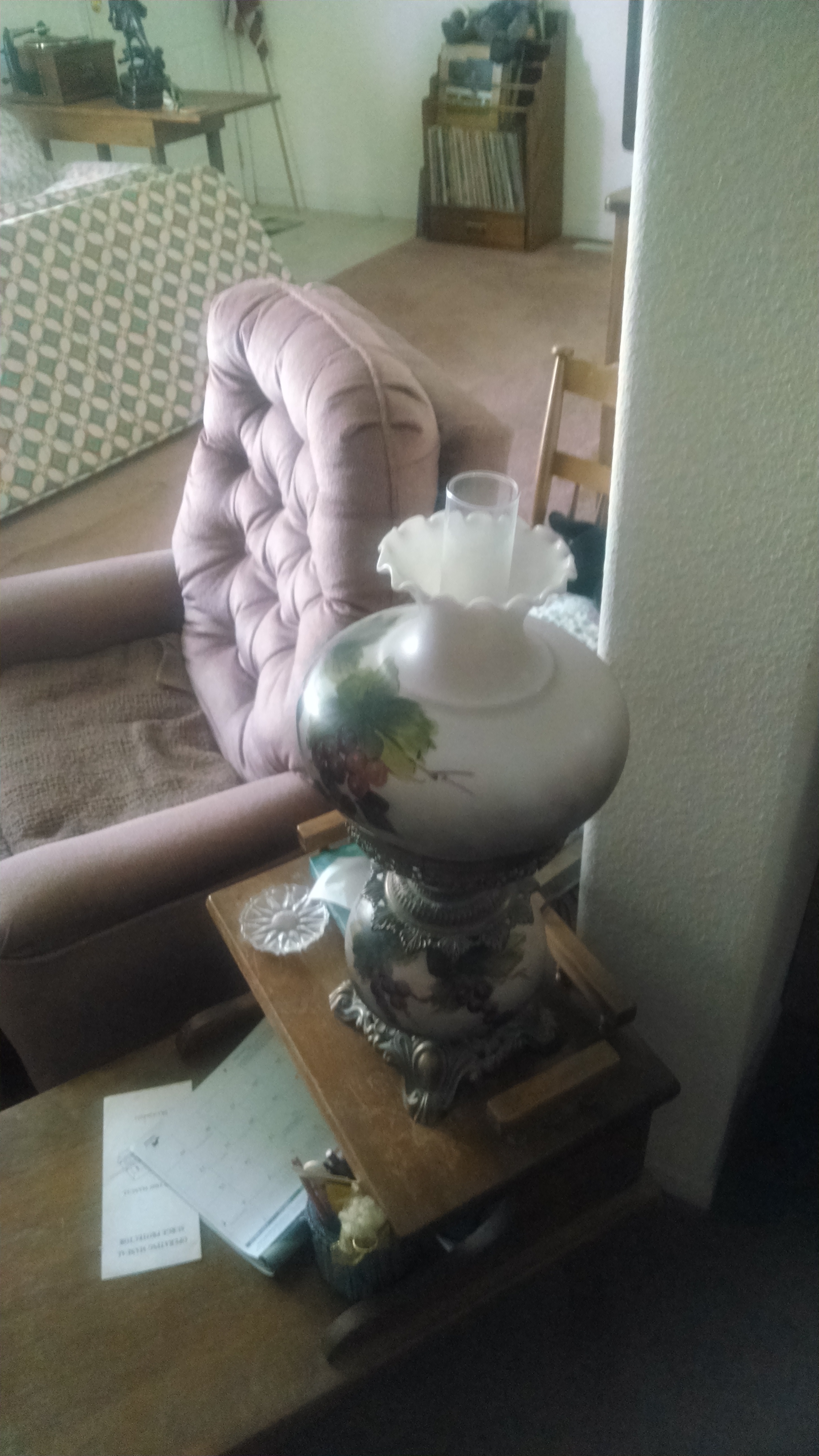 A glass table lamp, that was obtained by a great grandmother, unknown where bought from. But at least 50+ years old, single light source on top, electric, uses modern wide bulbs. Metal unknown, possible an off colored brass, or other semi-soft metal. The grapes appear painted on, or lamenated, how ever it was done back then, they are all in perfect condition.