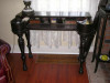 My mom found this in my great great grandma's chicken coupe. So I know it is at least 45 years old. We got it refinished in about 1993. It does have scuffs on it. I was also told it was made out of solid oak.