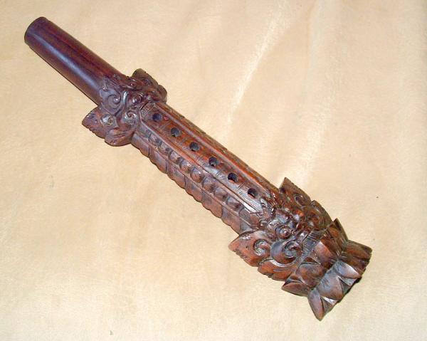 The flutes blow hole is located not on the top like other flutes, the hole for this one is on the under side of the flute.
