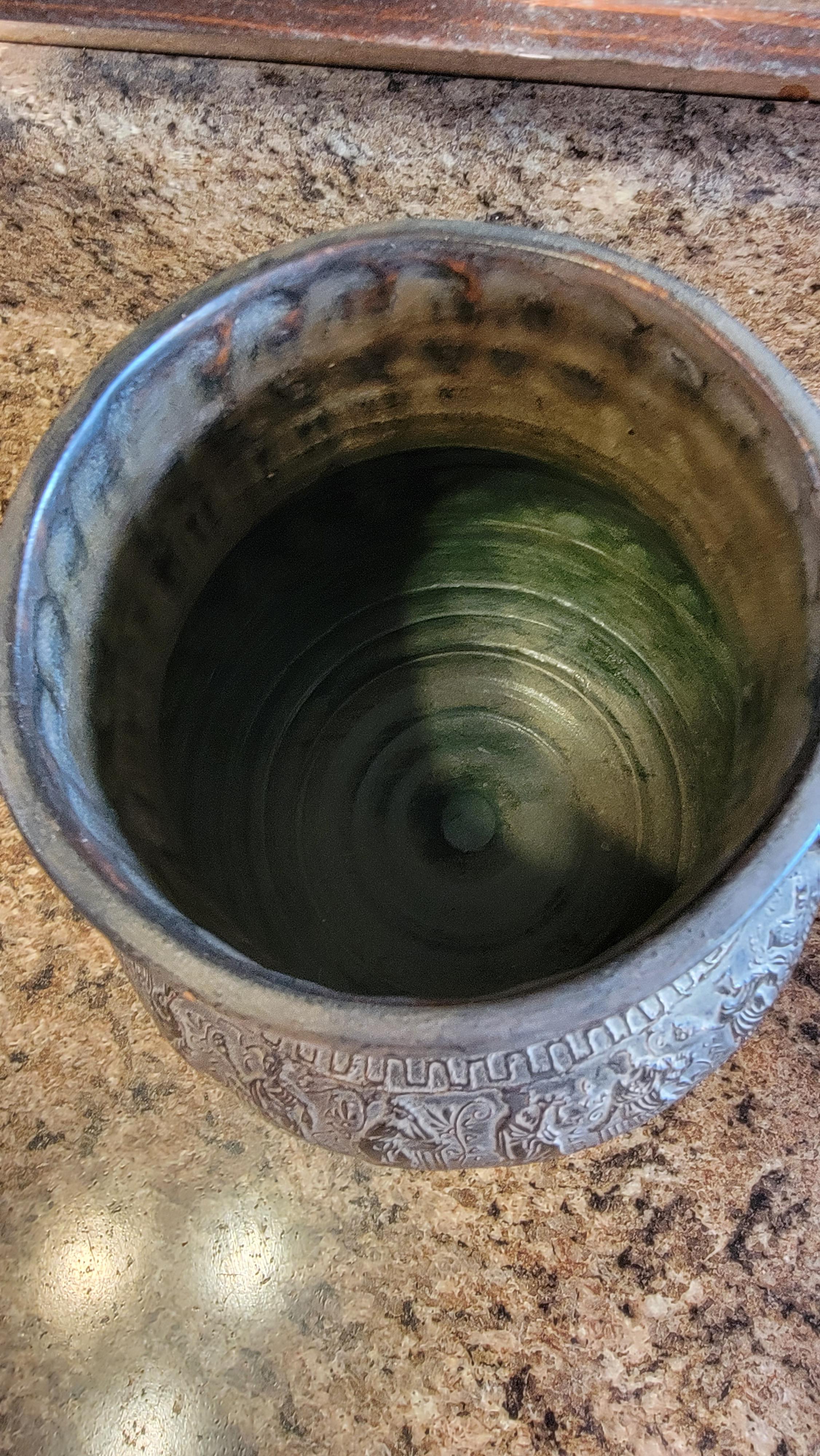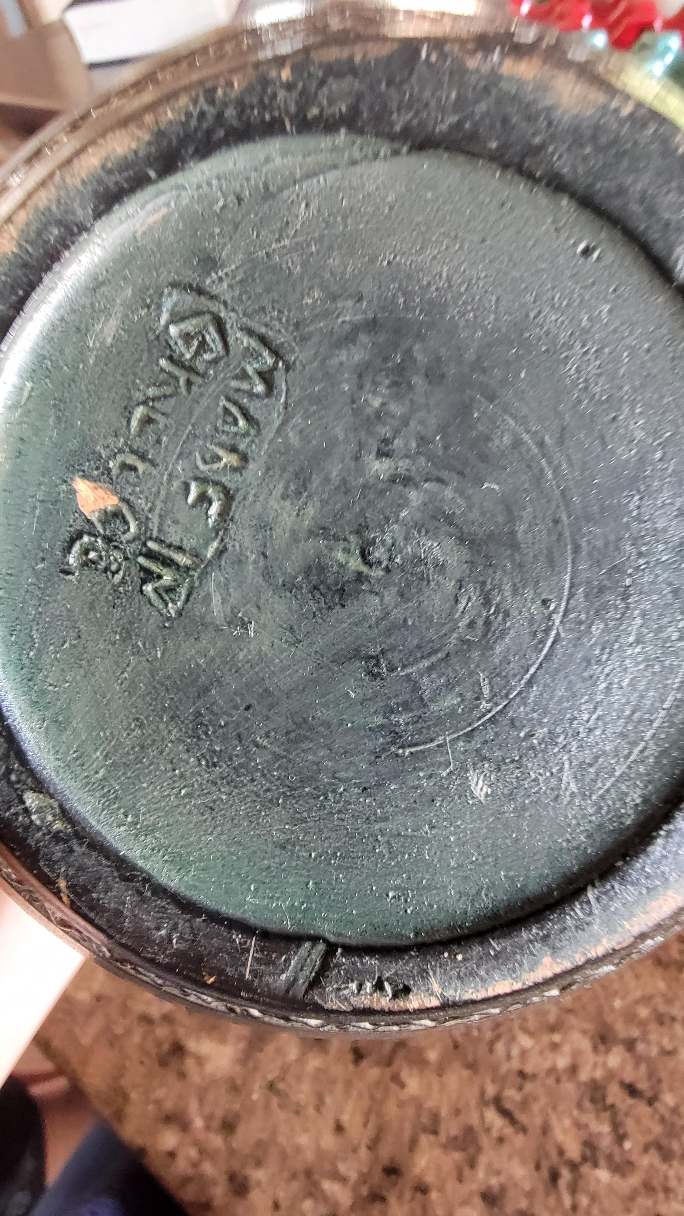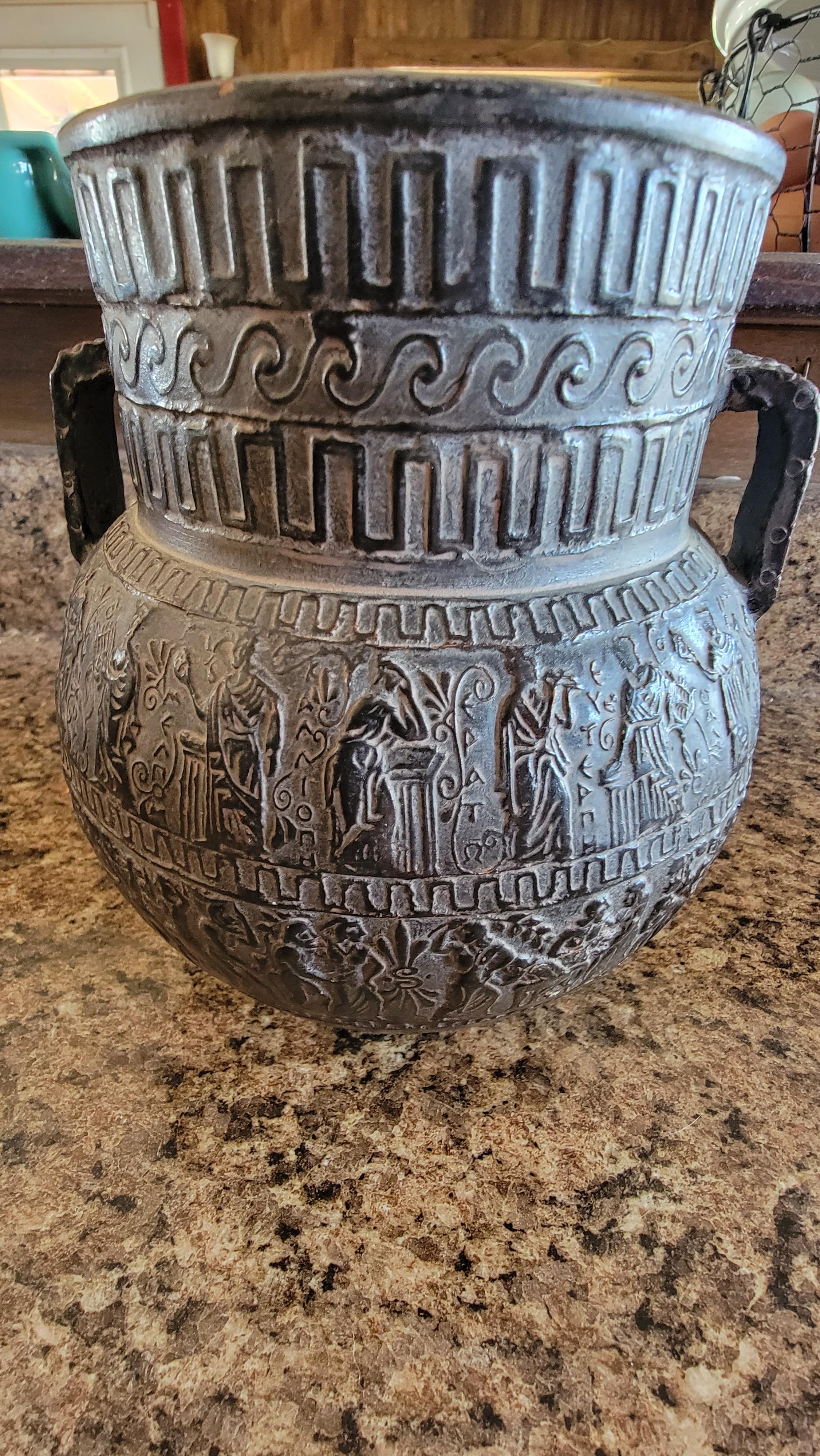 Greek looking pottery that has 'Made in Greece' carved into the bottom. It also seems to be designed in the Grecian style.