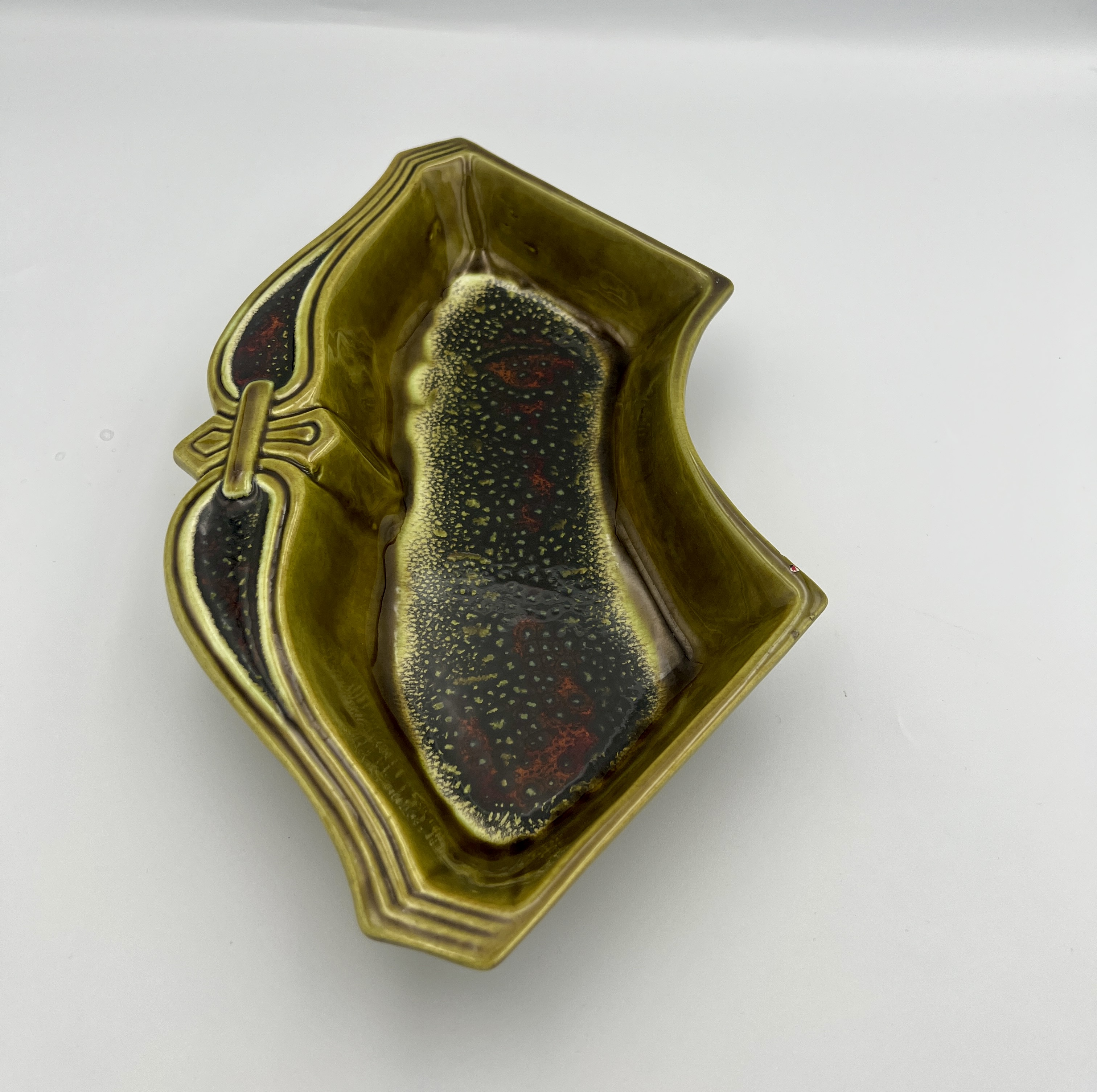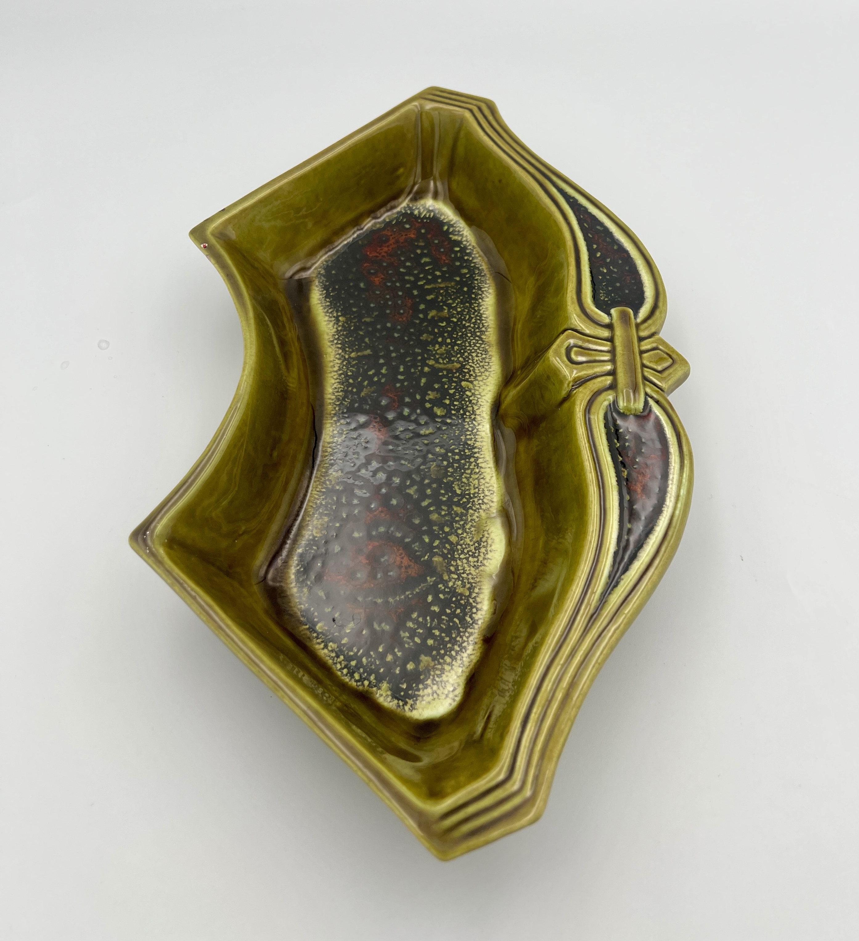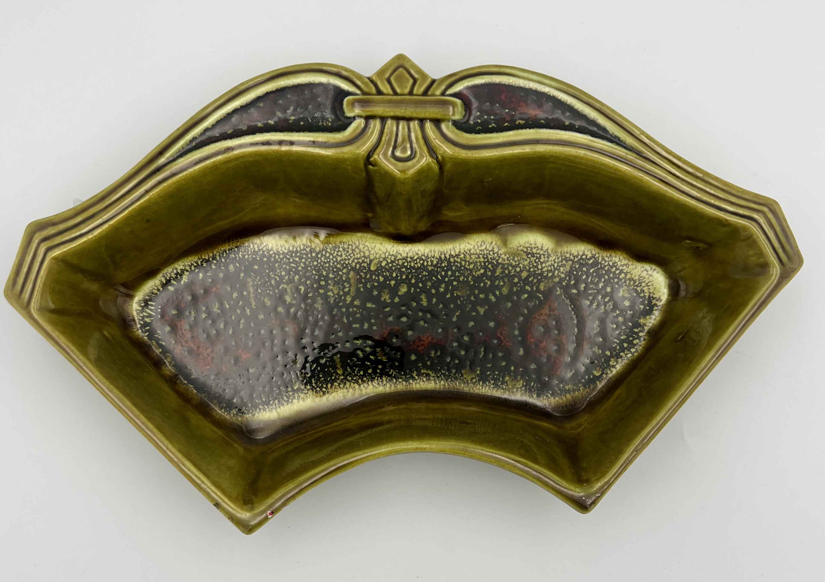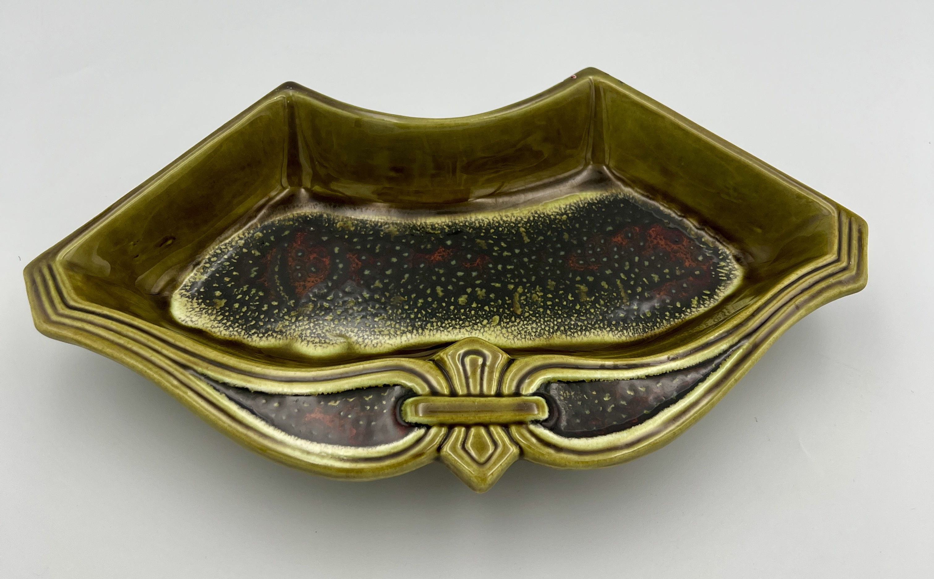 Collector Appeal: Collectors value Art Deco pottery for its distinctive style and historical significance. The combination of form and function, along with the rarity of certain designs, makes items like this tray highly sought after. The vibrant glazes and unique shapes are particularly appealing to collectors of mid-century modern decor.