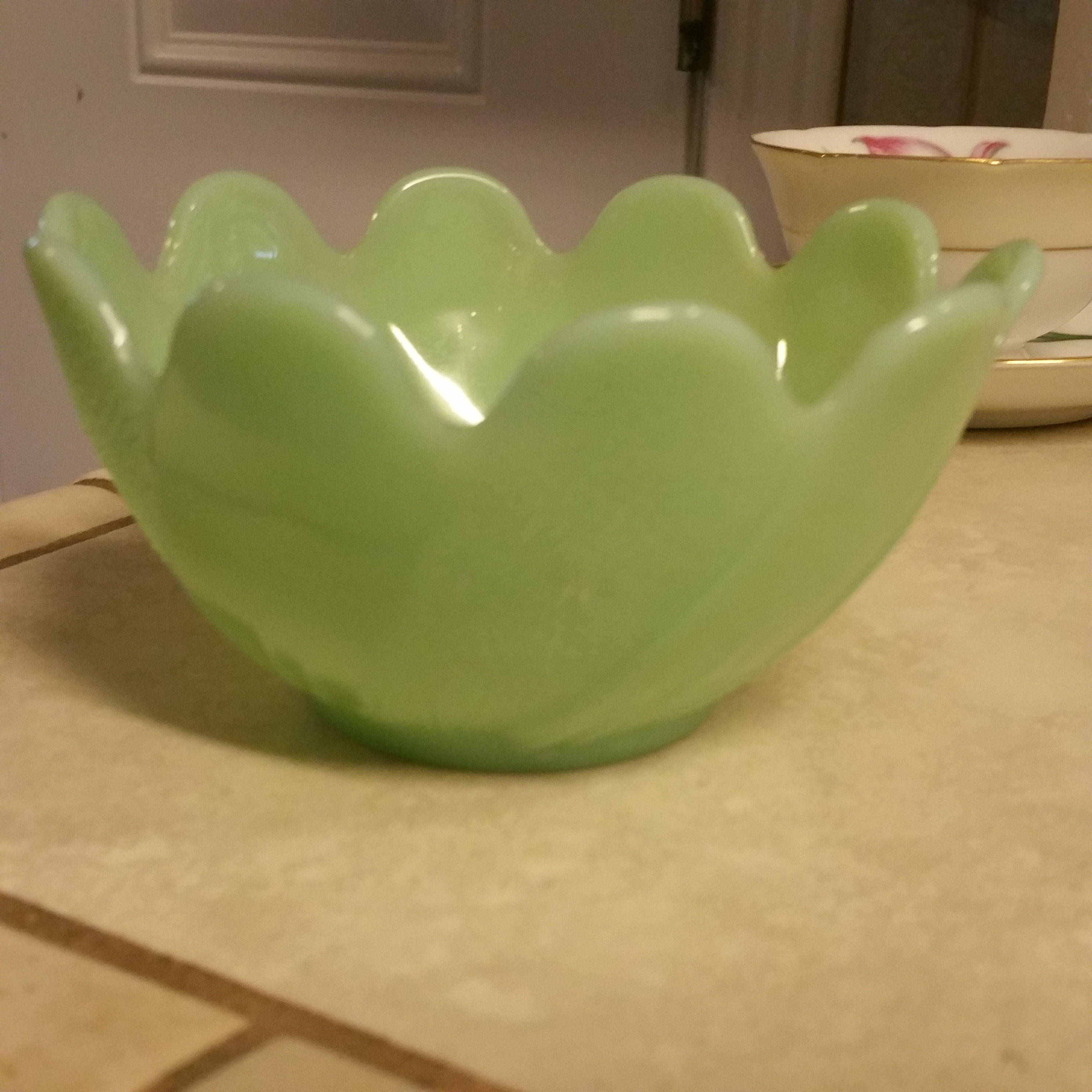 Small pale green bowl looks kinda like leaves around it.