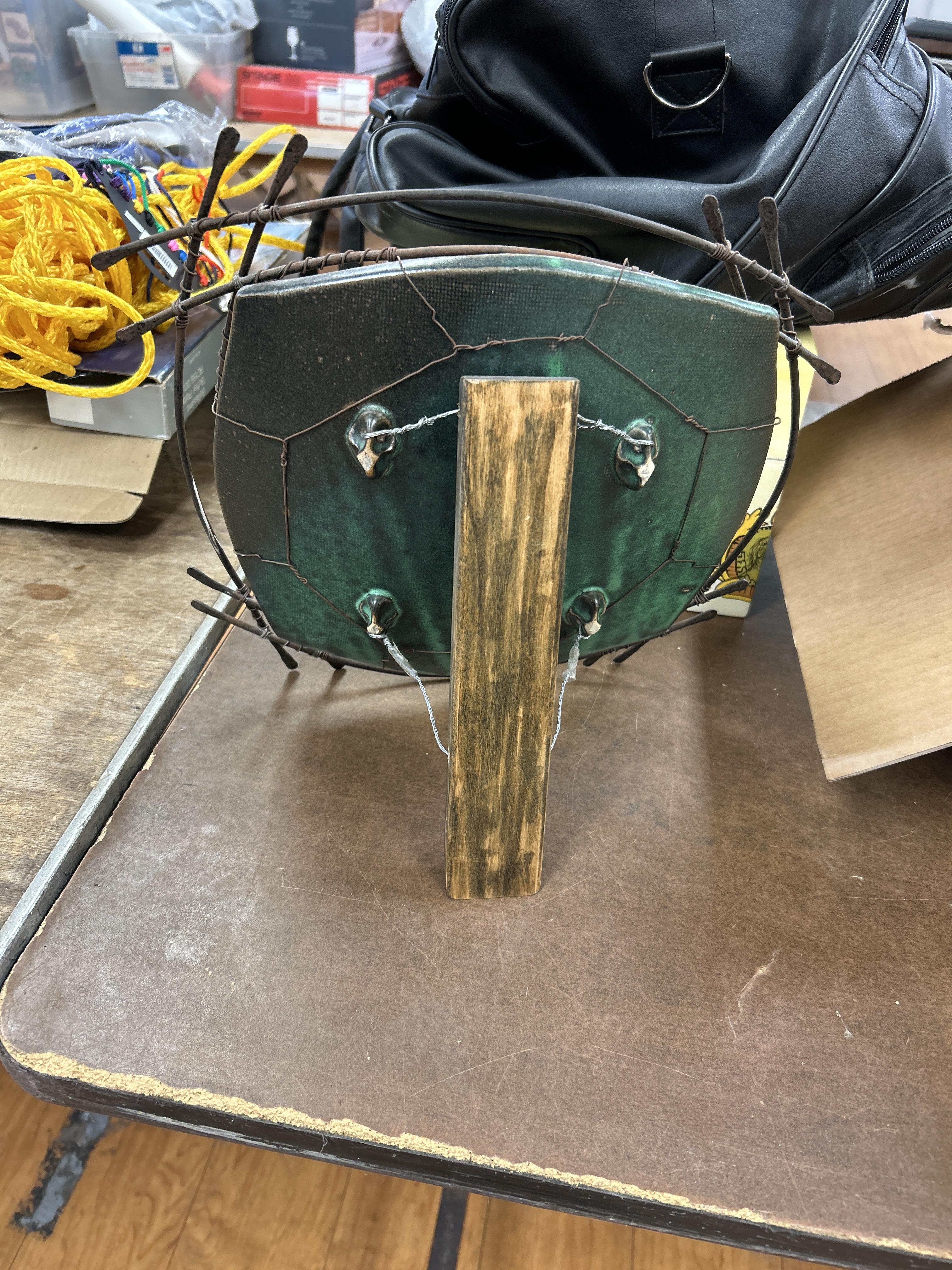 have a plate that i cant find another example of. it has a steel frame wired together with an attached wood stand.