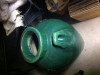 Physical Description: This large vase features a vibrant green glaze with a smooth, glossy finish. The vase has a rounded body with two small handles on either side, giving it a classic amphora shape. The dimensions are approximately 24 inches in height and 18 inches in diameter. The weight is substantial, indicating a solid ceramic construction.