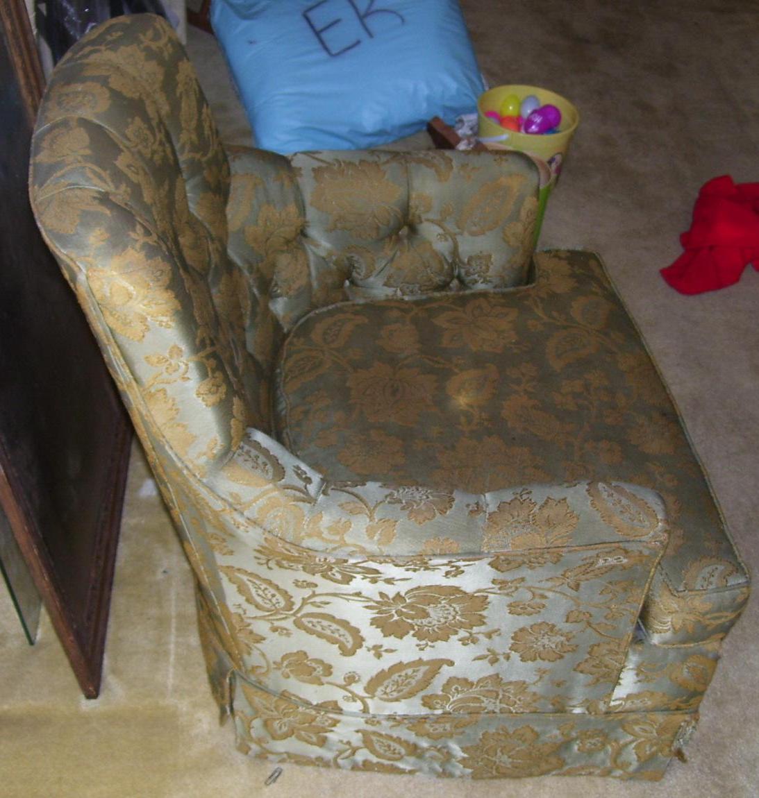 Some of the skirting has been damaged. The rest of the chair is in good condition. Would love to know more about it and it's possible value. Thanks for your help!