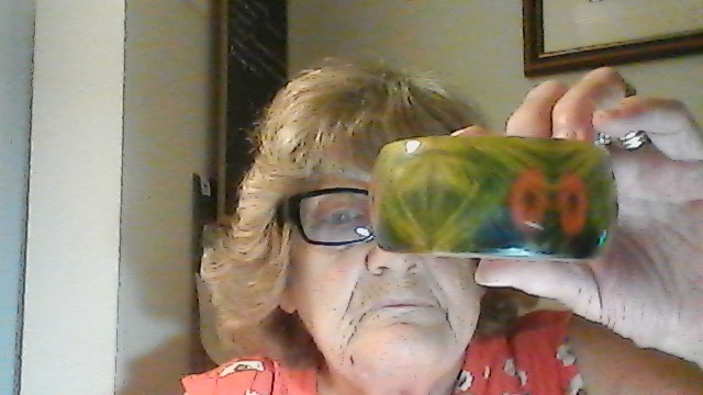 Physical Description: This wide cuff bracelet features a vibrant color palette of green, yellow, and orange. It is made from a material that appears to be Bakelite, a type of early plastic known for its durability and color retention. The bracelet measures approximately 3.25 inches in diameter and 1.5 inches in width. The interior is smooth, and the exterior showcases a woven pattern. A distinguishing mark includes the date "1747," although the rest of the inscription is unclear.