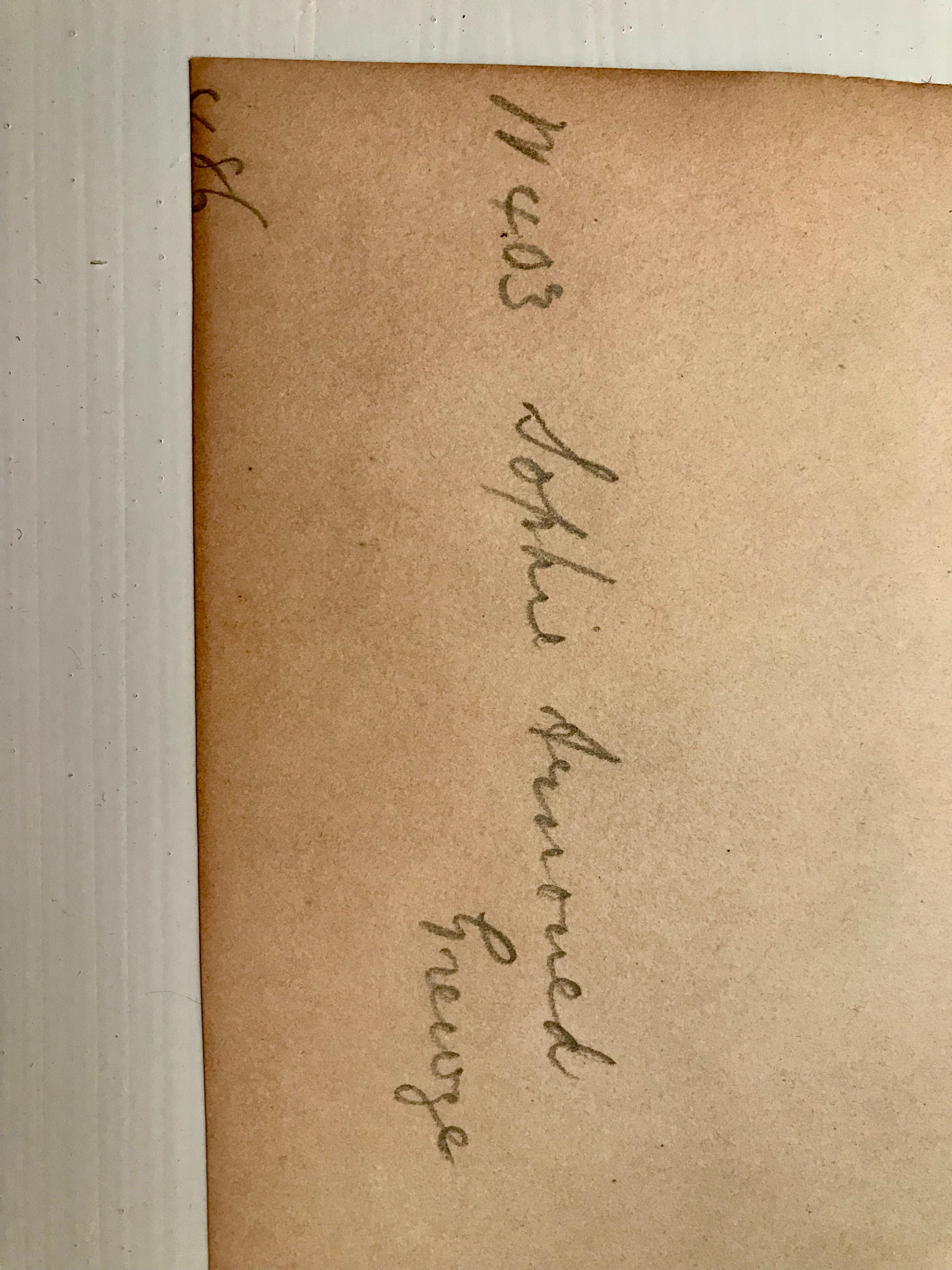 recently purchased a picture at a thrift store because I loved the frame.  I had to rip open the back of the portrait in order to separate the frame from the portrait. There were small thin nails between the backing and the portrait (see photo).  On the inside of the frame was a label (Rabjohn & Morcom 408 Fourteen St. Oakland).  On the back of the portrait was 403 Sophie Arnould below this was the name Greuze (all written in pencil).  On the bottom, left corner was the number 86.  I included pictures of everything described above.  The picture and frame is 8x10.  Could you please let me know if there is any value in the portrait or the frame?