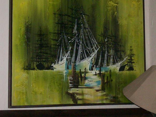 it shih in a harbor ,green in color it have a number on it 8749