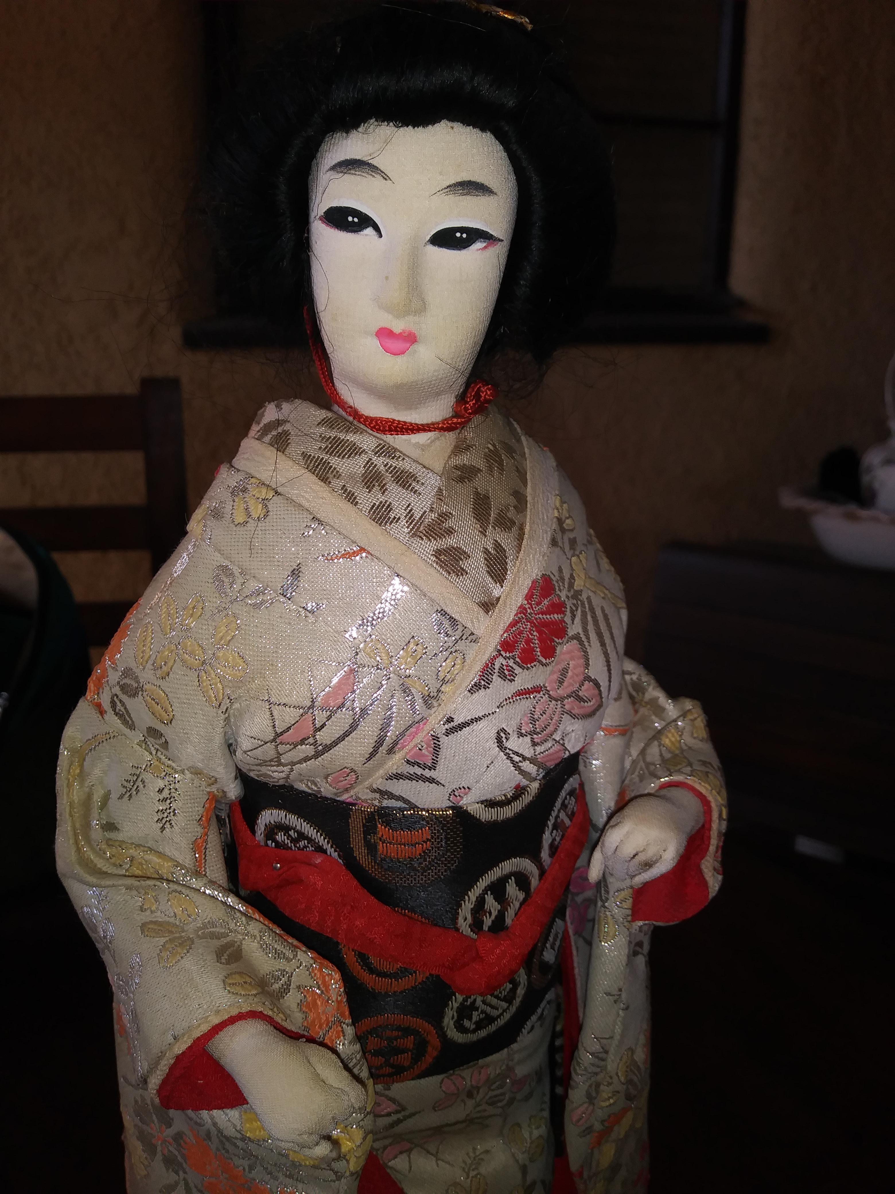 I have several antique geisha dolls that i know really nothing about. The faces are made of material not porcelain. However the smallest is made of a plaster type material. Most say made in Japan on bottom of stand. But no stamps i can see. Would really like to know if they are worth anything. Thank you!