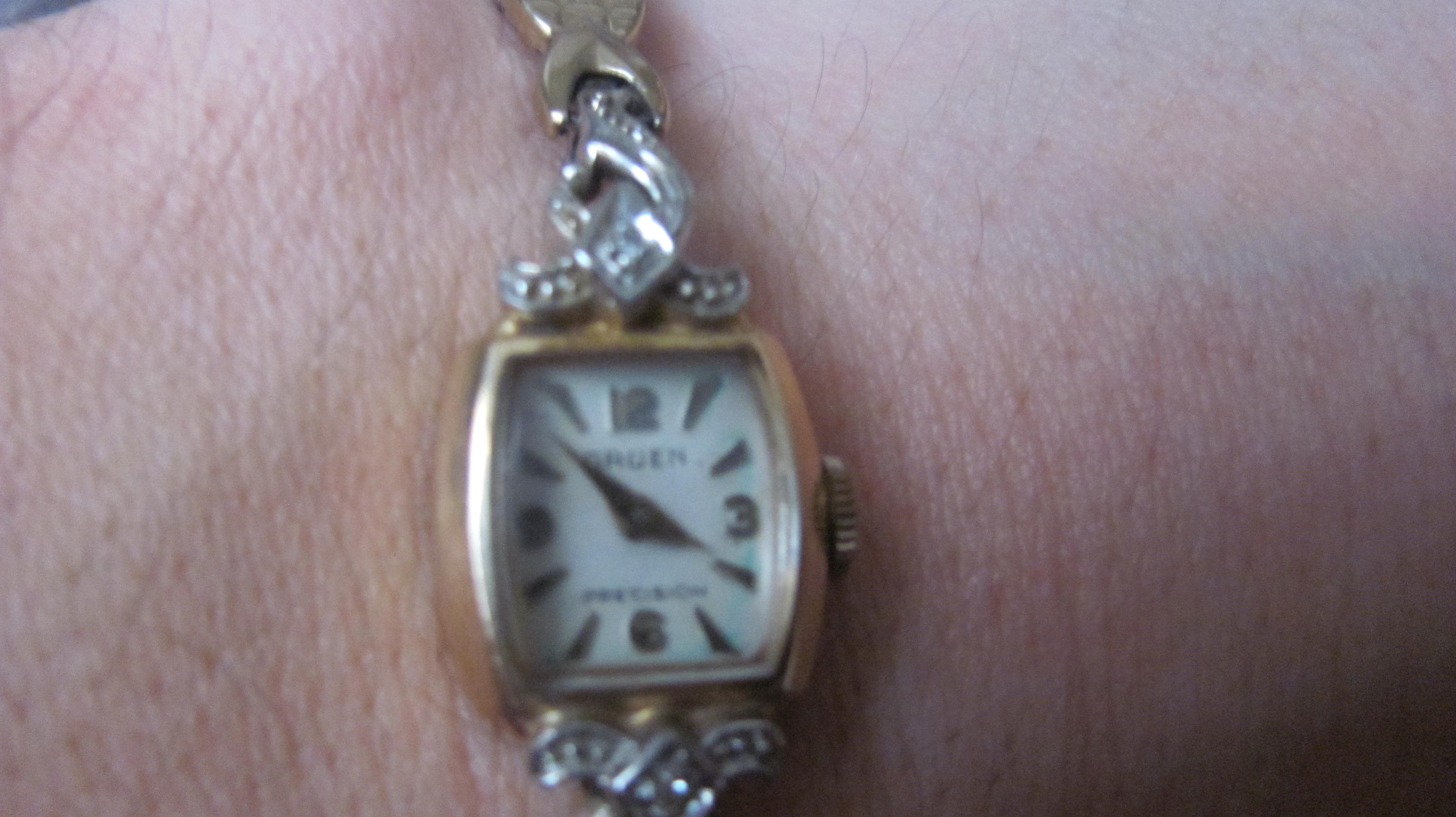 Ladies Gruen watch, 14 kt gold. Small in size.