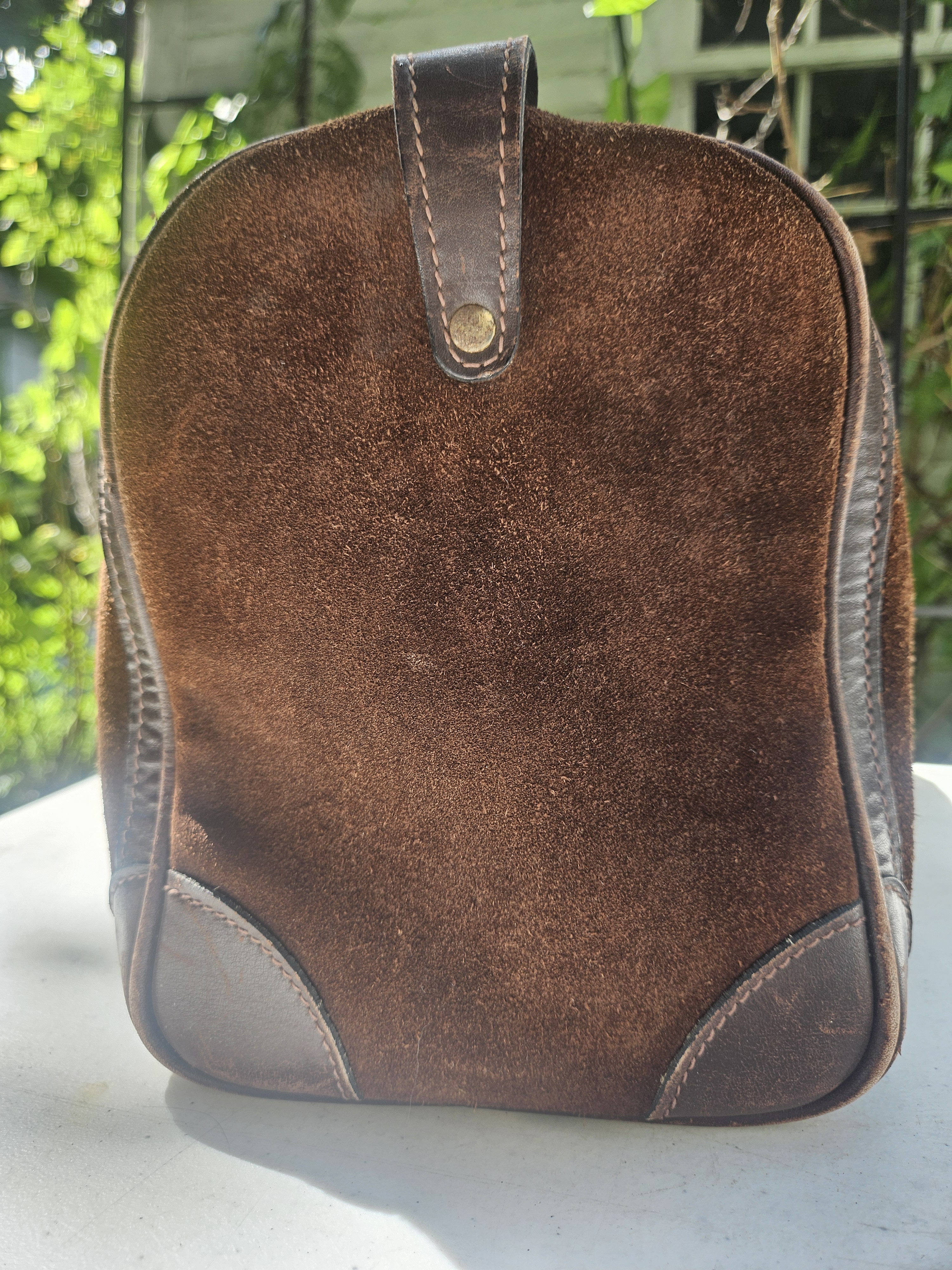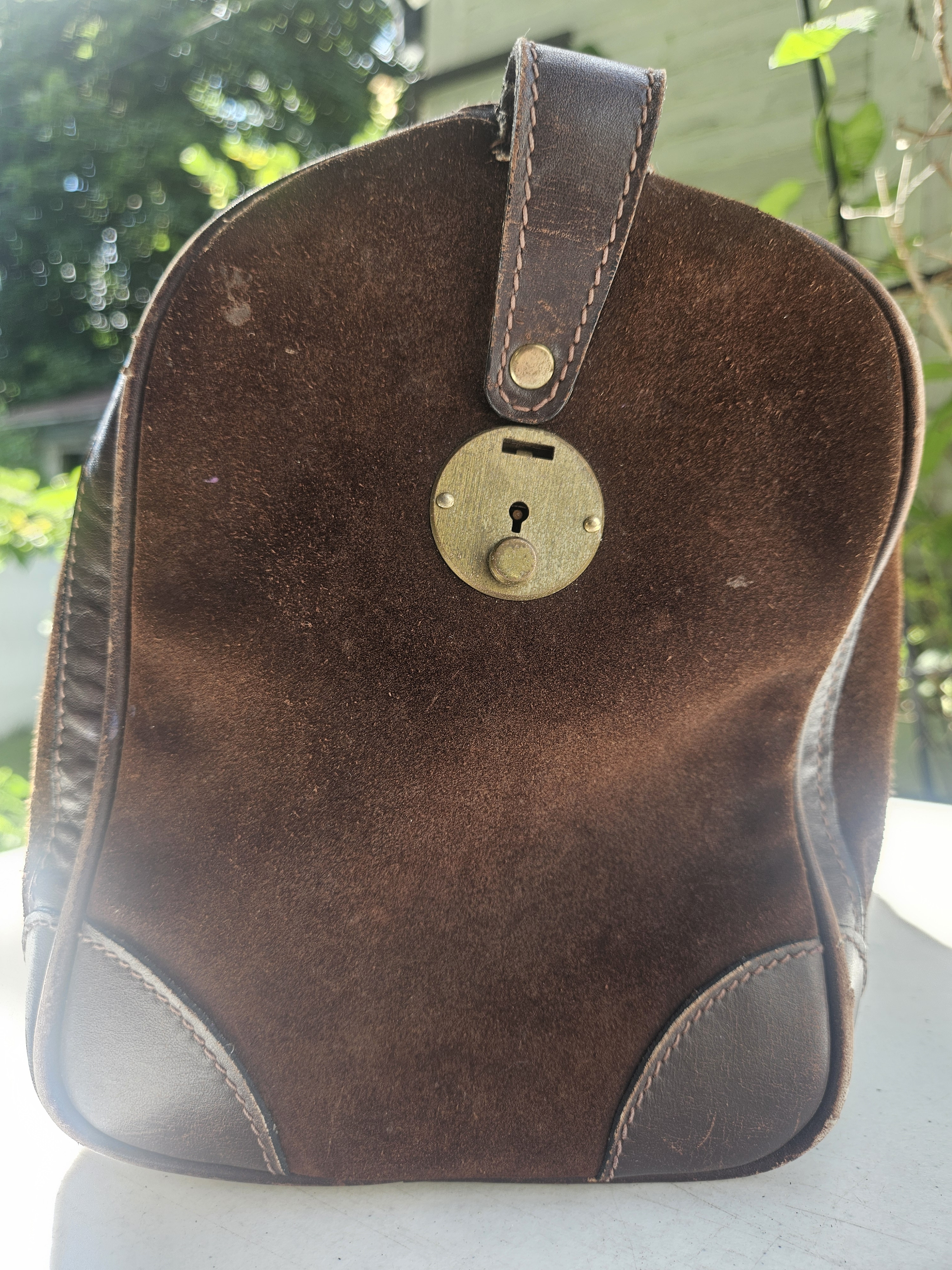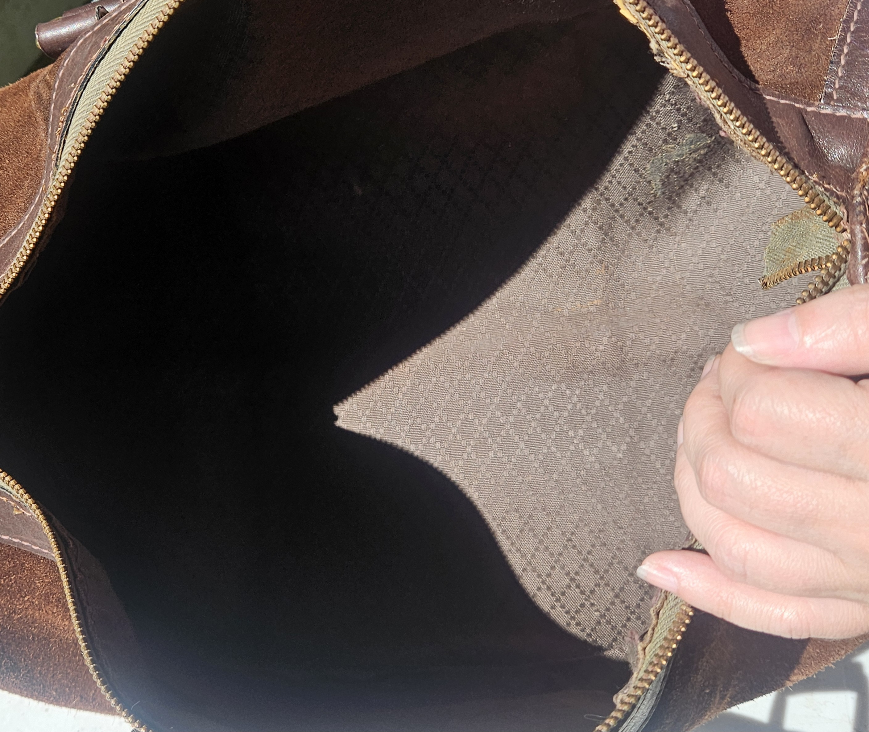 Condition: Good vintage condition (some surface wear on suede and leather, aging visible on zipper and lining)