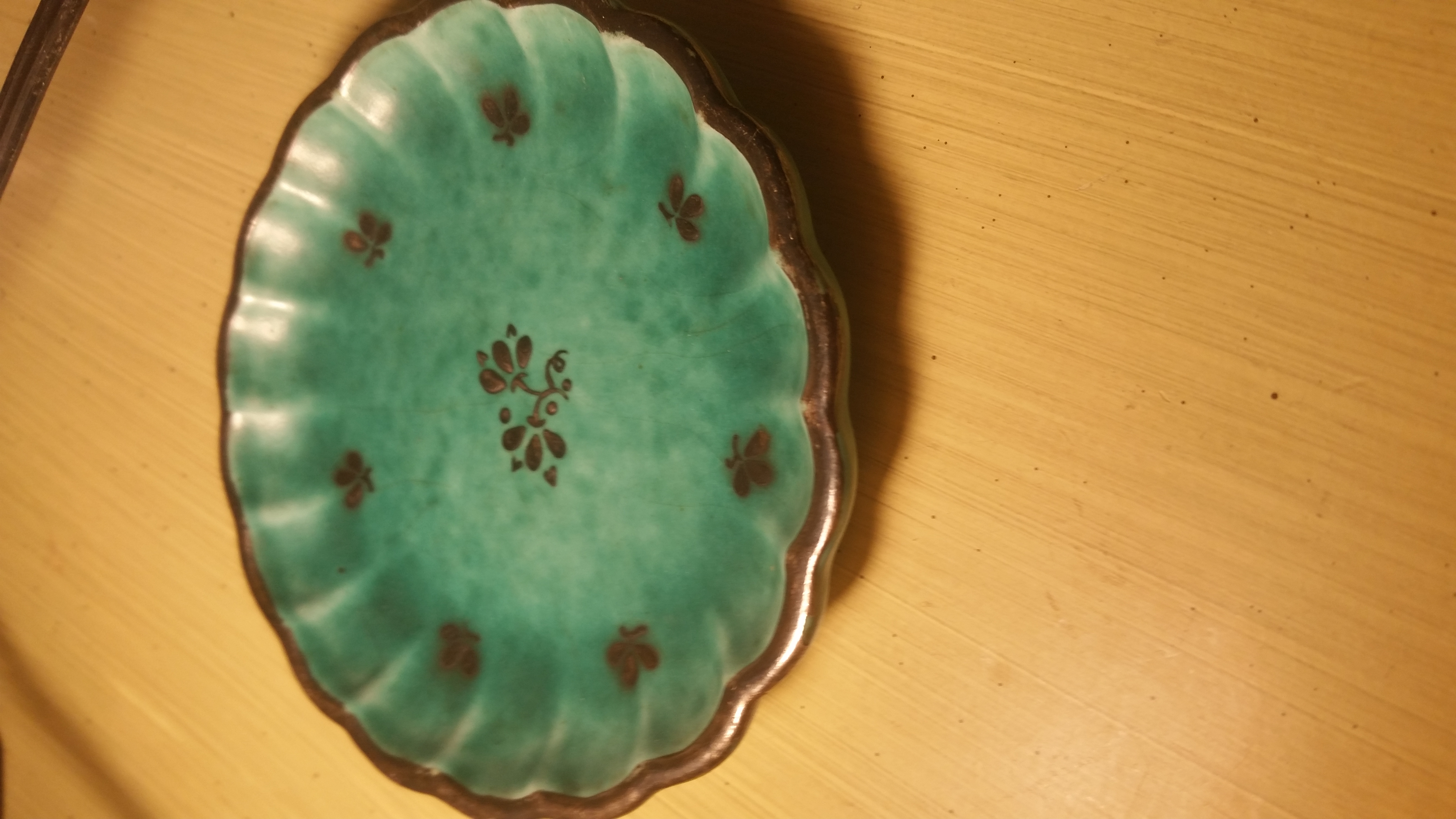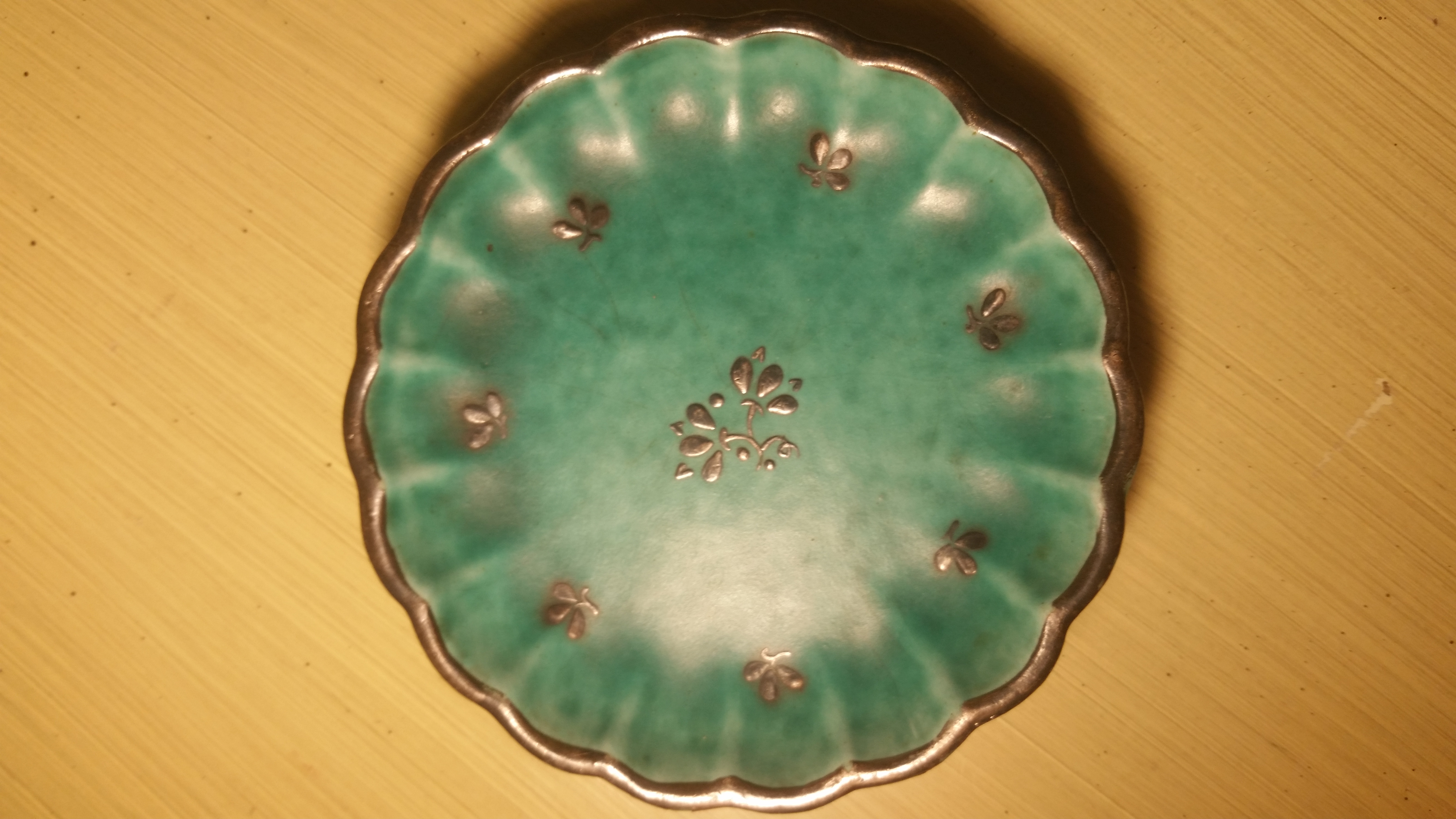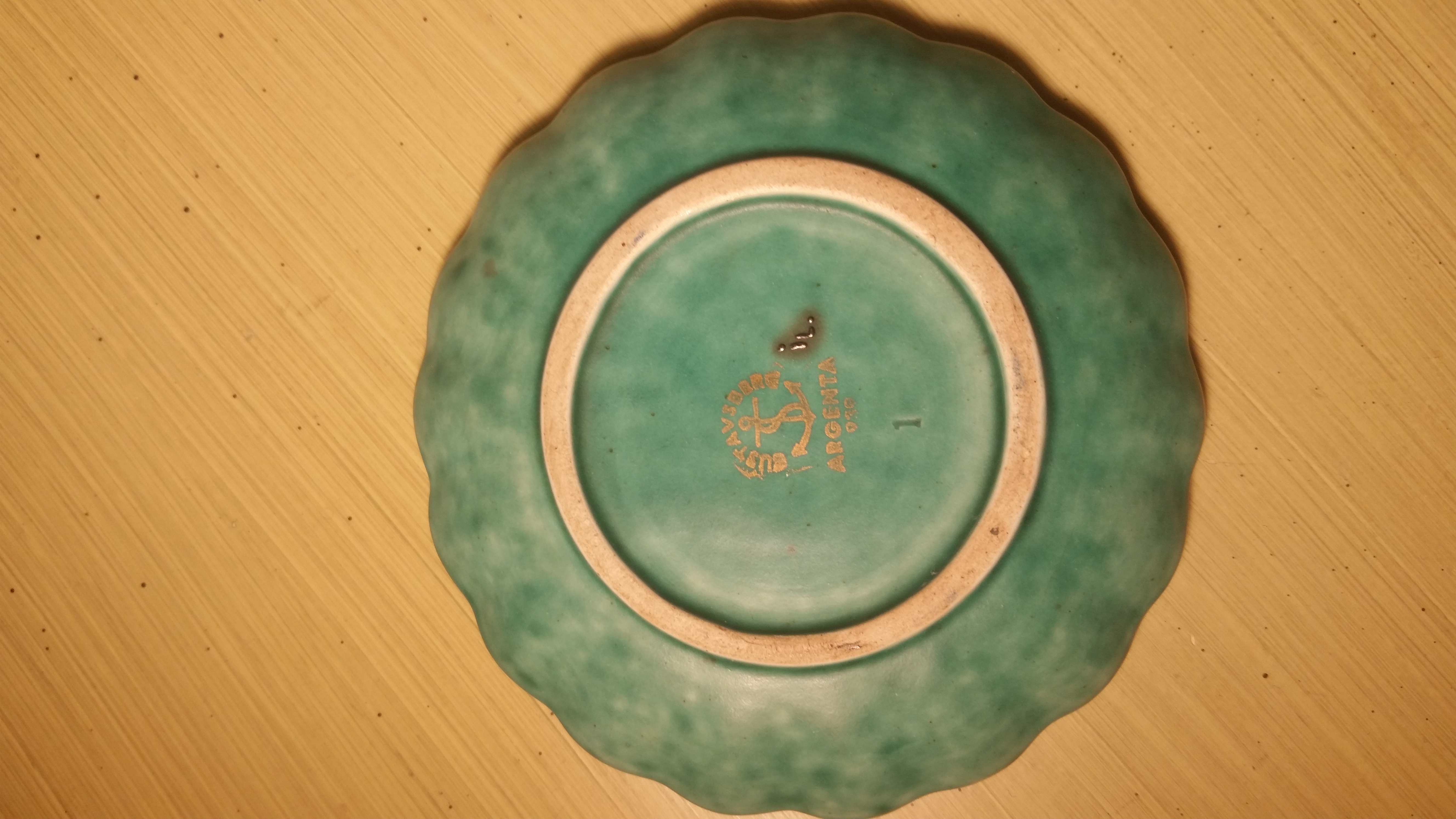 It is a small, 4 inch, fluted dish. On the back it has 030 along with the Argenta stamp. There is a 1 pressed, and the initial iL. In silver.