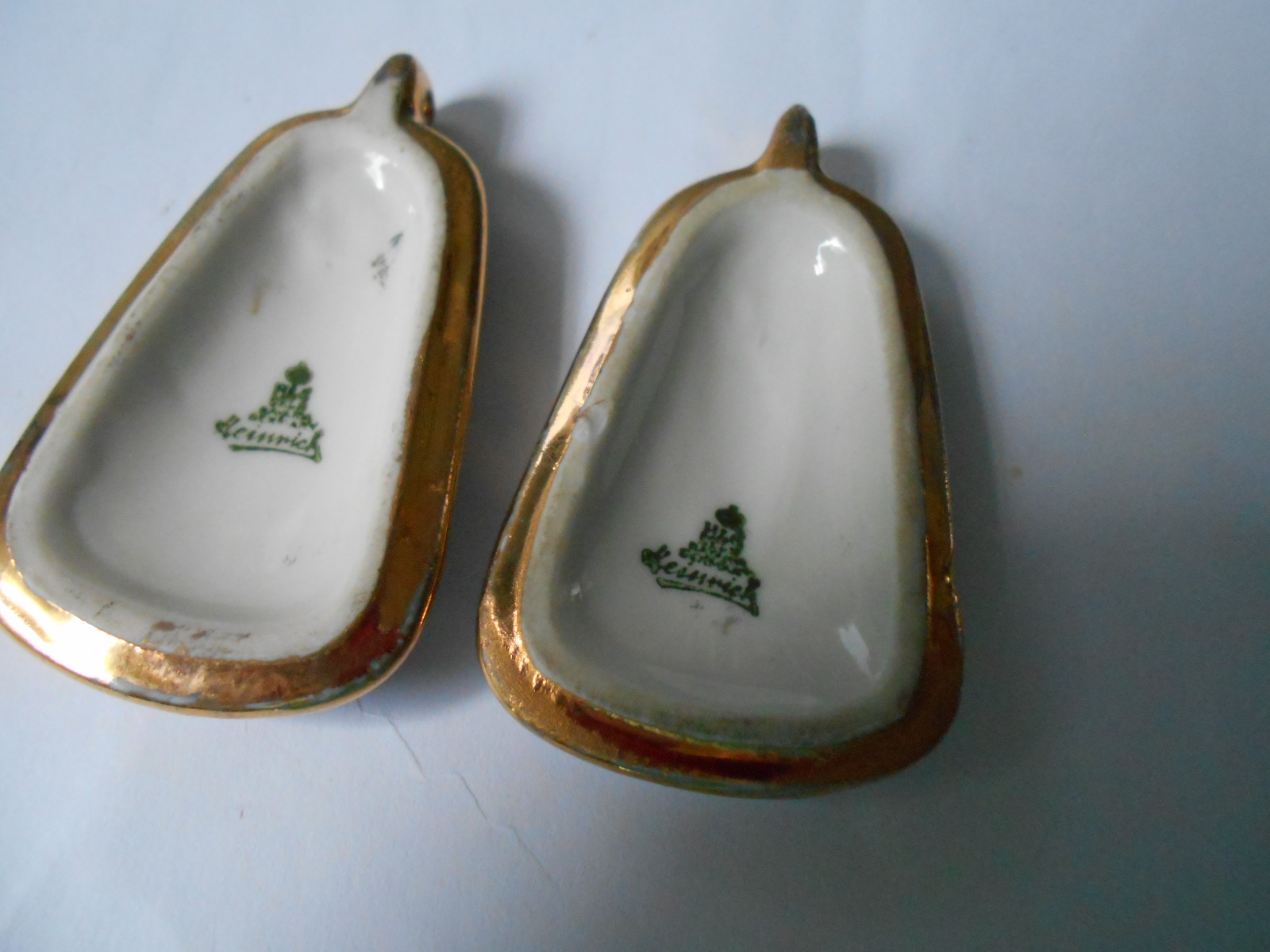 Hi, I am unable to find these online,they have a green mark and a crown followed by H & C Selb bavaria germany Heinrich,i am guessing that they are some kind of porcelain pendants.They are about 2 inches long,i would also be interested in a value on them.Thank-you.