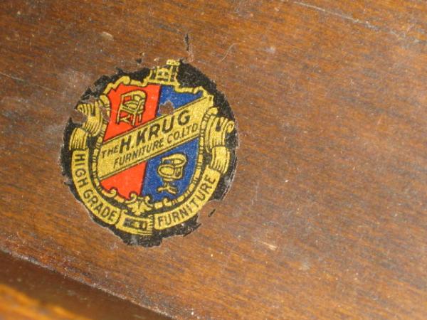 Label inside one of the drawers says "The H. Krug Furniture Co. Ltd. I did look through a 1913 H.Krug furniture catalogue online (mostly mission furniture) but didn't find anything that even resembles this piece.