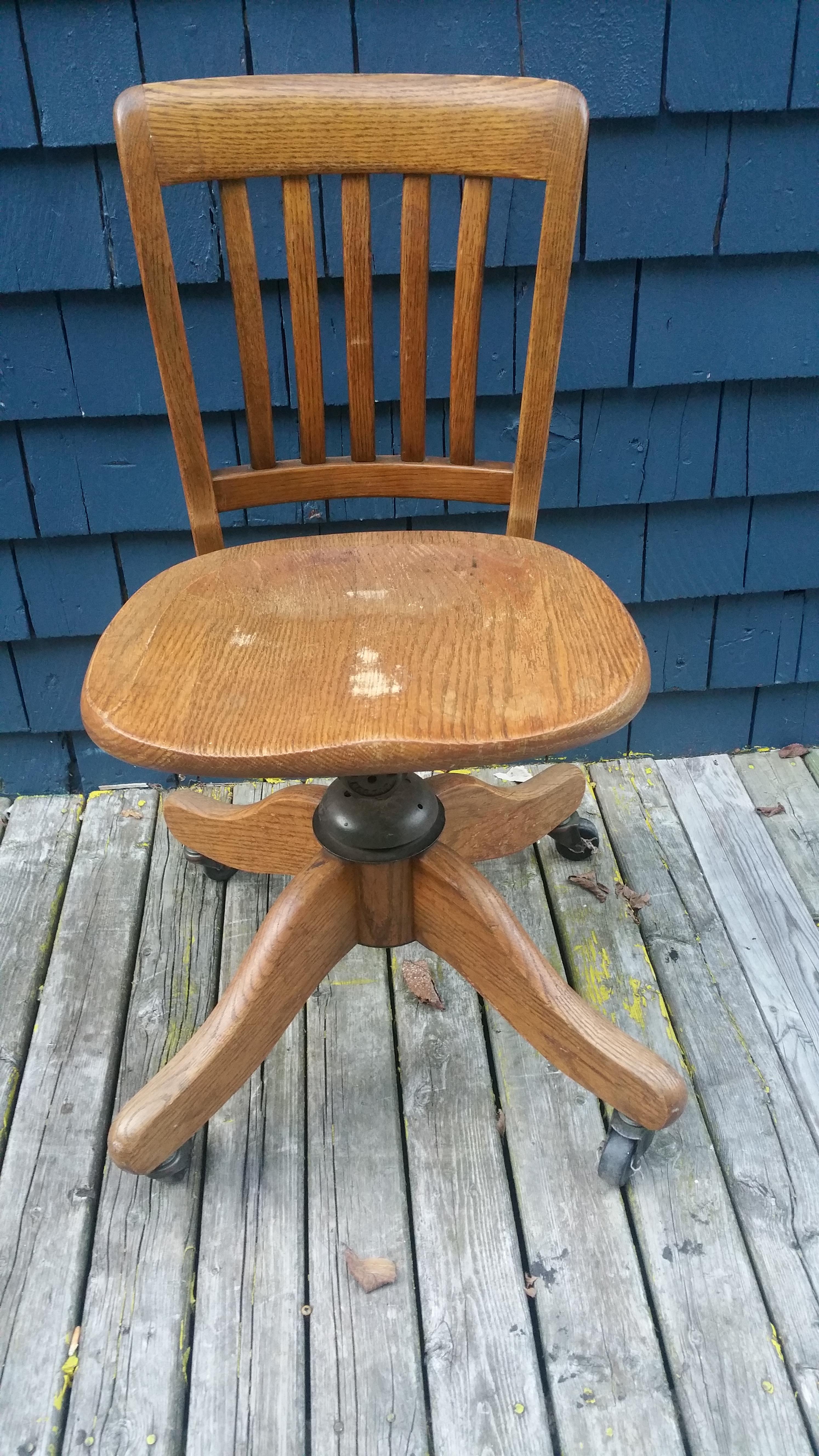 The H. Krug Furniture Co. Limited, Kitchner, Ontario Wooden Swivel Chair on Wheels with Spring Back and Metal Parts