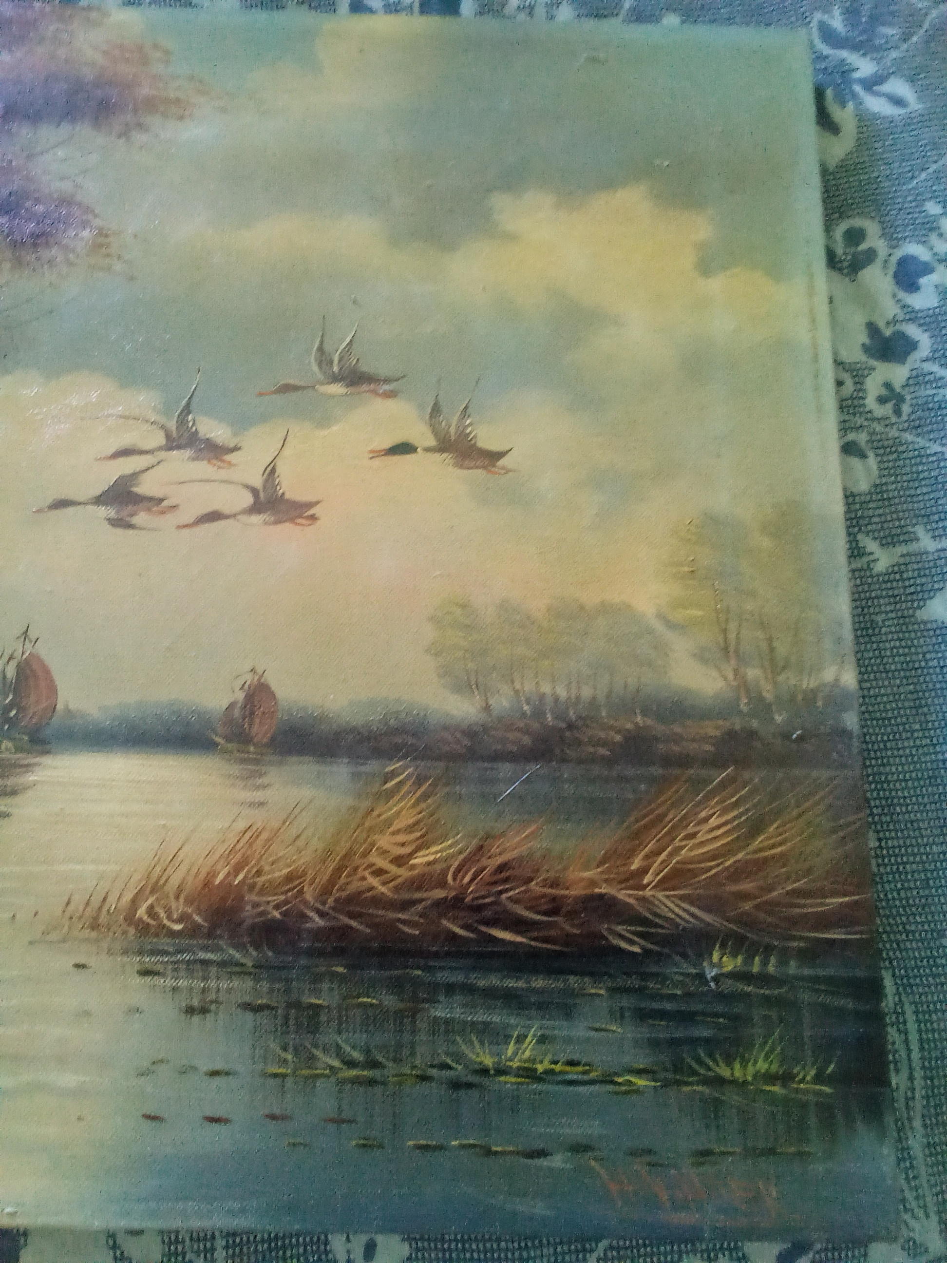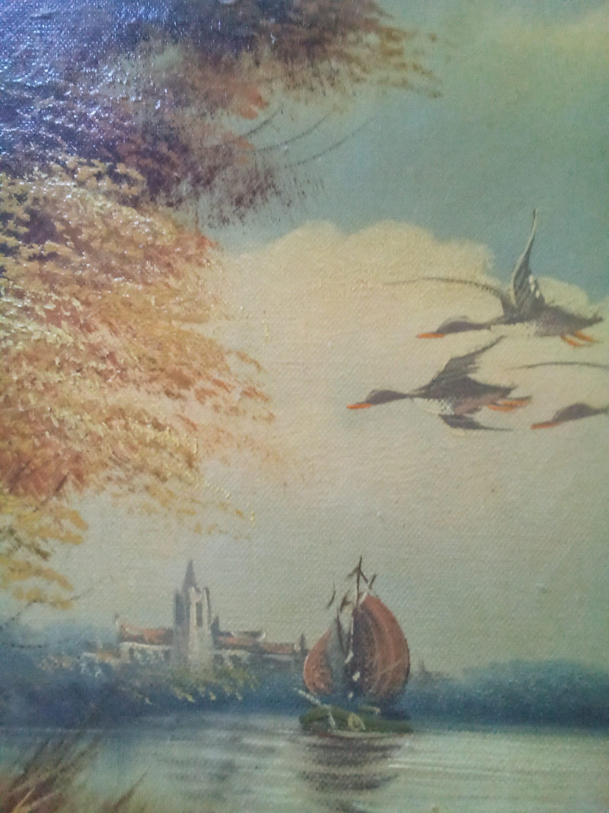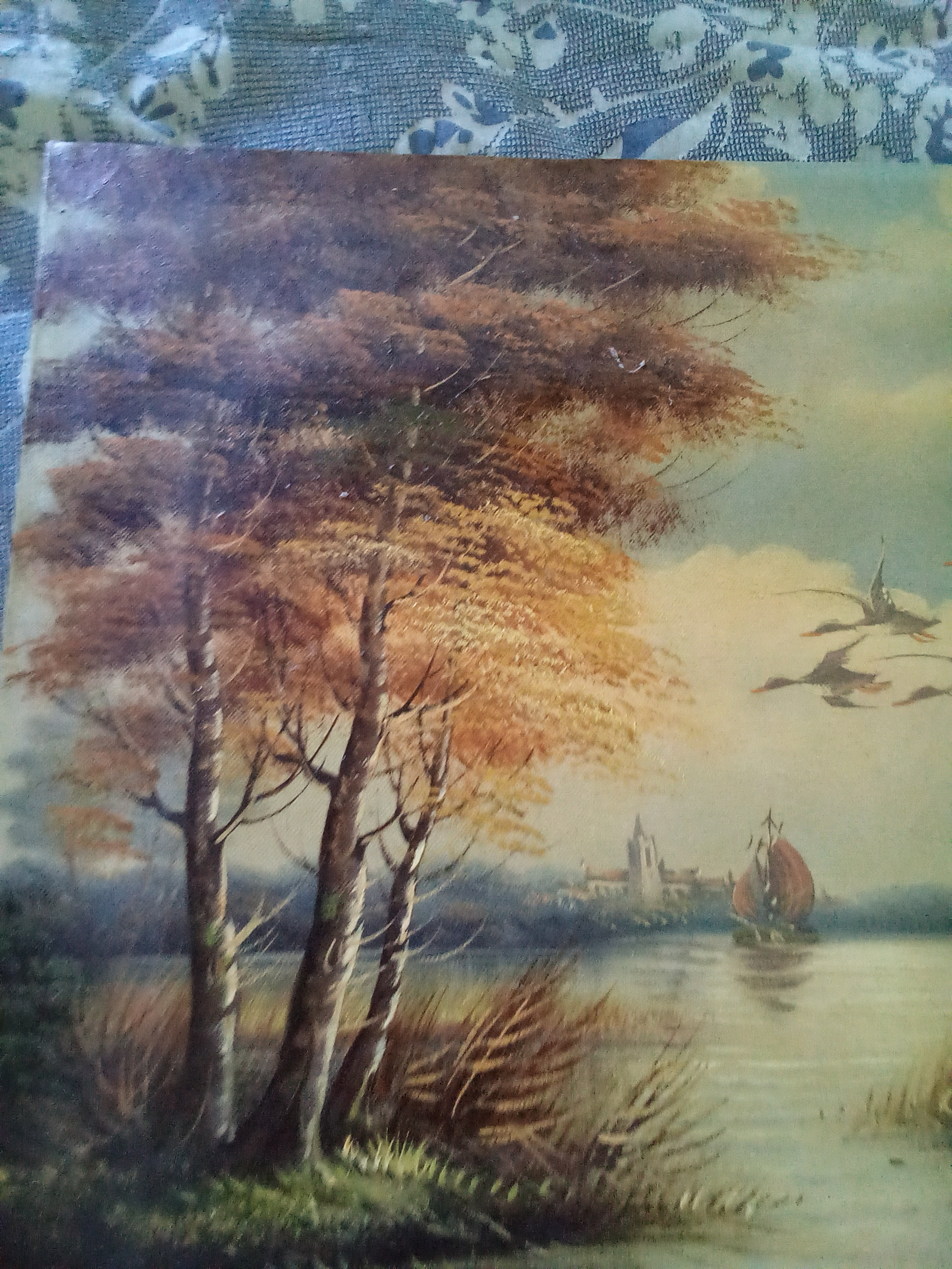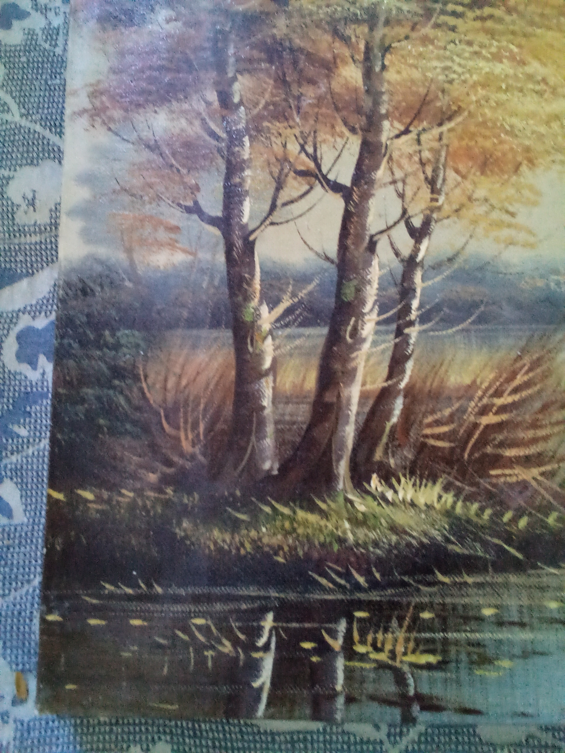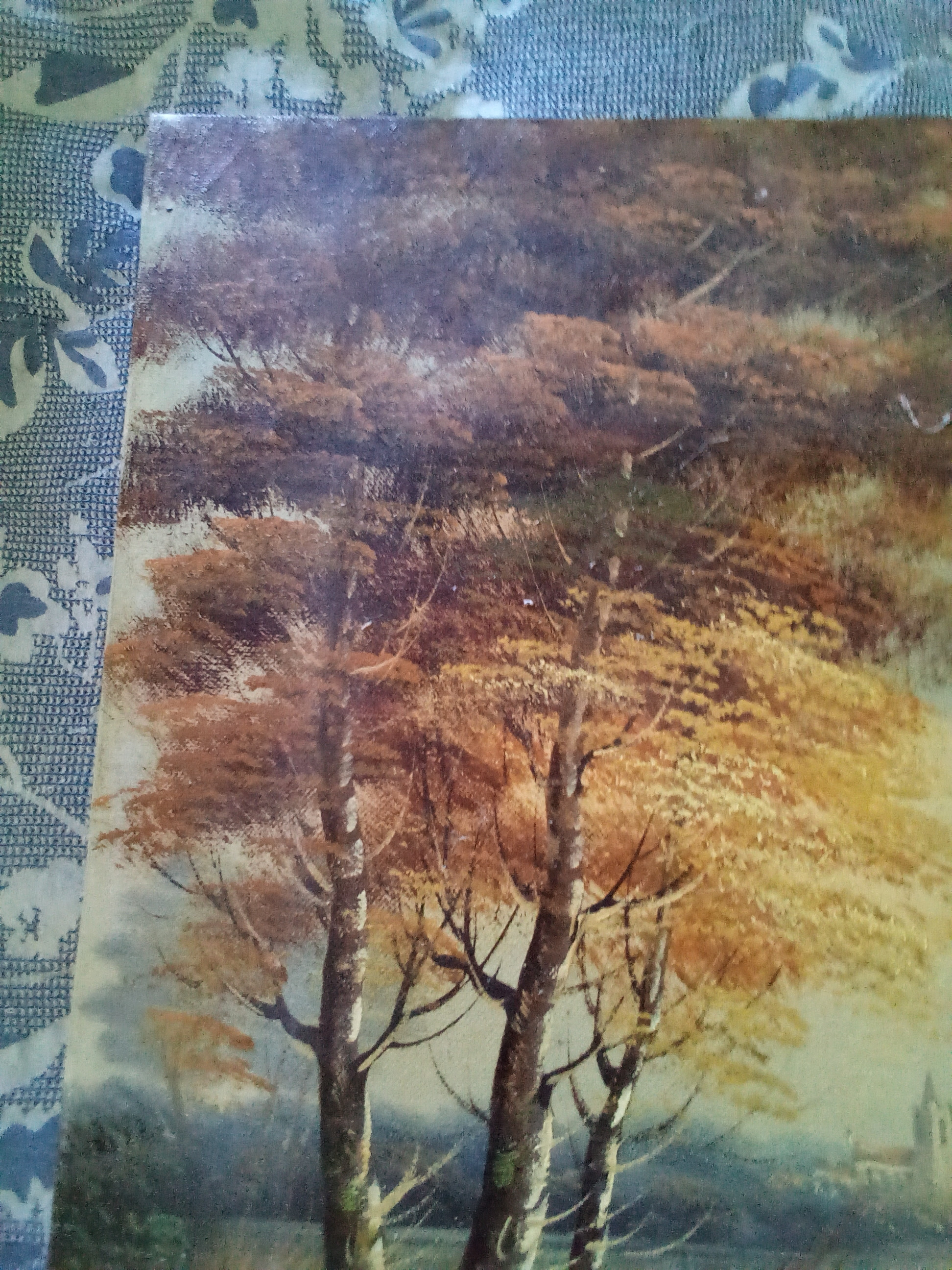 This painting is in good condition to me , except it is very dirty (dusty.) I found it in a local Goodwill.