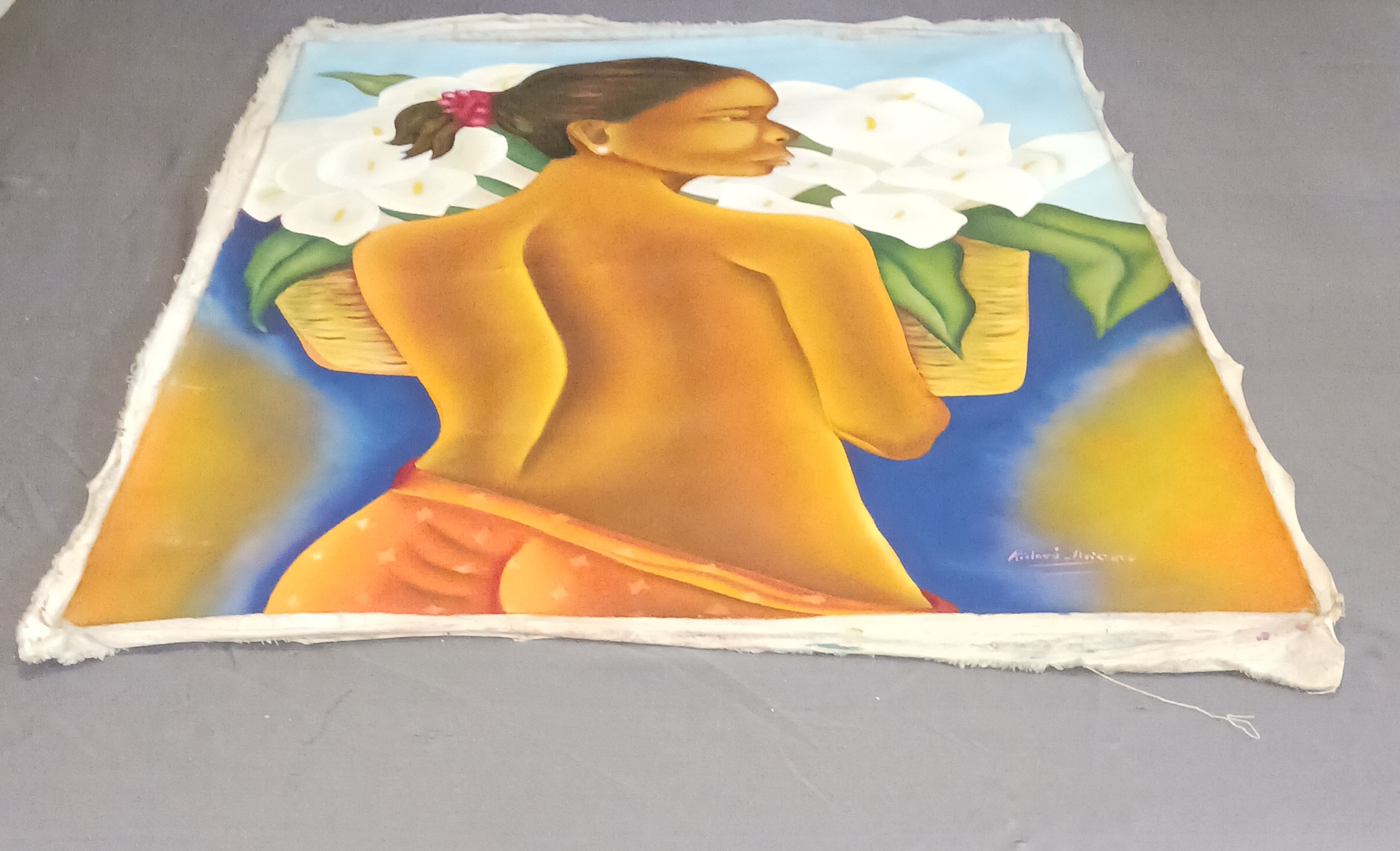 I tried to research this Haitian painting, but came to a dead end perhaps because I can't read the signature. It was given to me by a co-worker who happens to be Haitian almost 10 years ago. It's such a beautiful work of art. I didn't think to ask about it at the time and now I don't know exactly where he his. Recently, I found a print of my original oil painting online and tried to contact the seller, but their email account is closed. Now I don't remember the site where I saw it. Could you please appraise it for me.