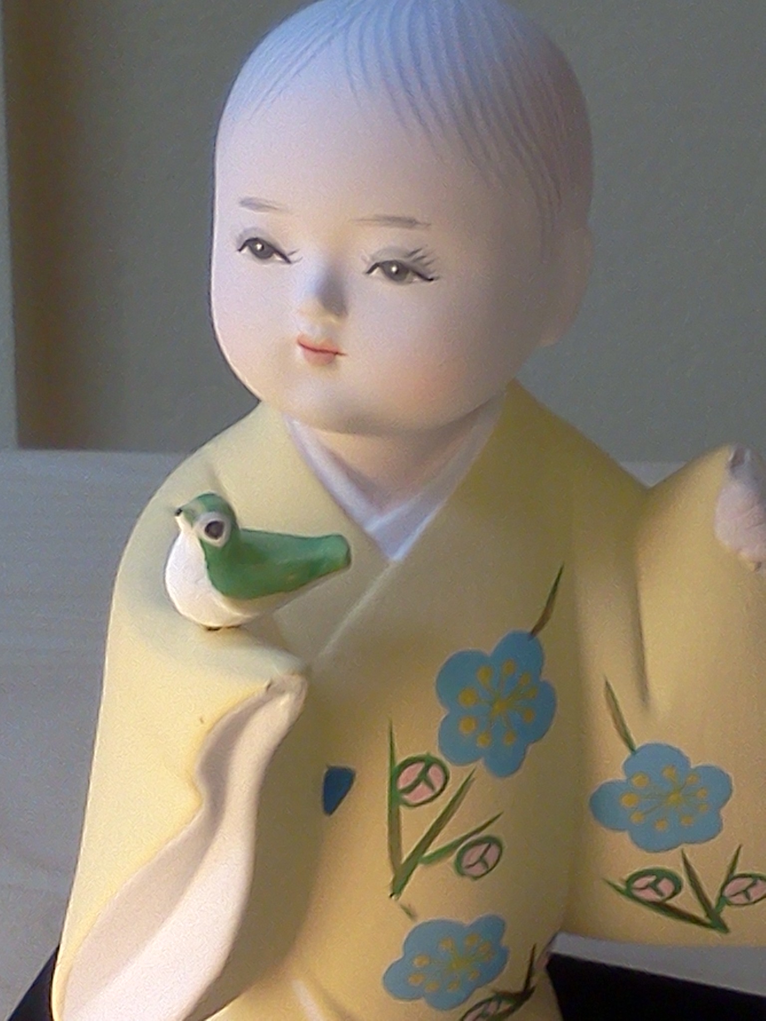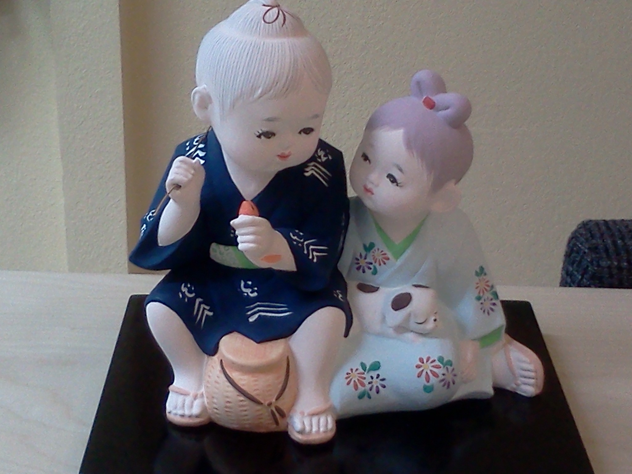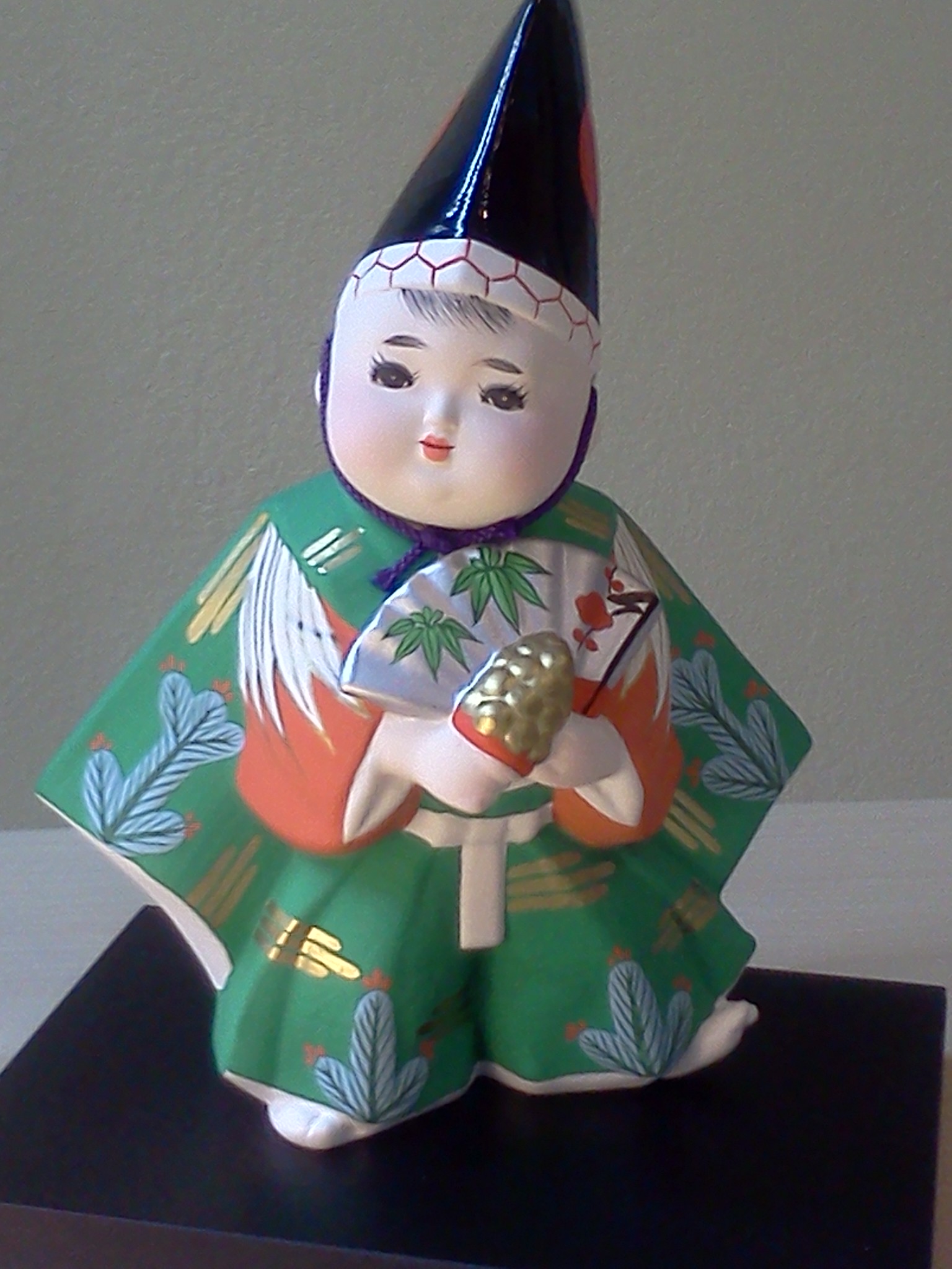 Received as gift from grandmother some time during 1980s. Sticker on bottom of foot says "Specially made for Gump's. Made in Japan." This is one of a collection of ten different Hakata Dolls - would like to sell the collection. Nine out of the ten pictured below.