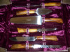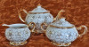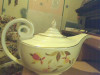 salad bowl with gold and burnt orasnge flowes and brown leaving