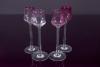 This set was given to me in 1968 as a present. Was told it was my friend's grandmother's purchase from overseas. The grandmother had passed them on to my friend, who passed them along to me as a wedding present. Set contains 7 large glasses and 5 small glasses. Stems clear, bowl part different color per each glass. Glasses are not exactly alike because they are hand made.