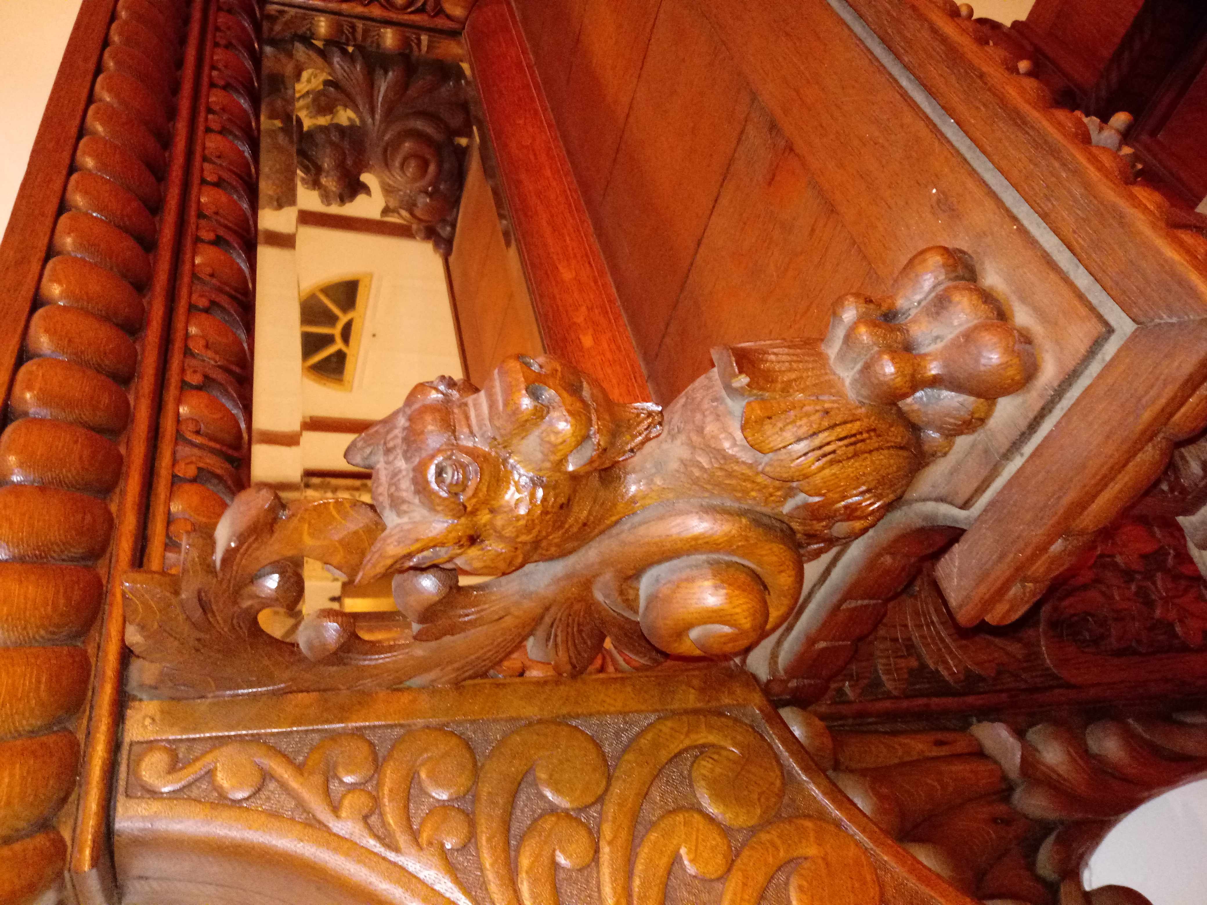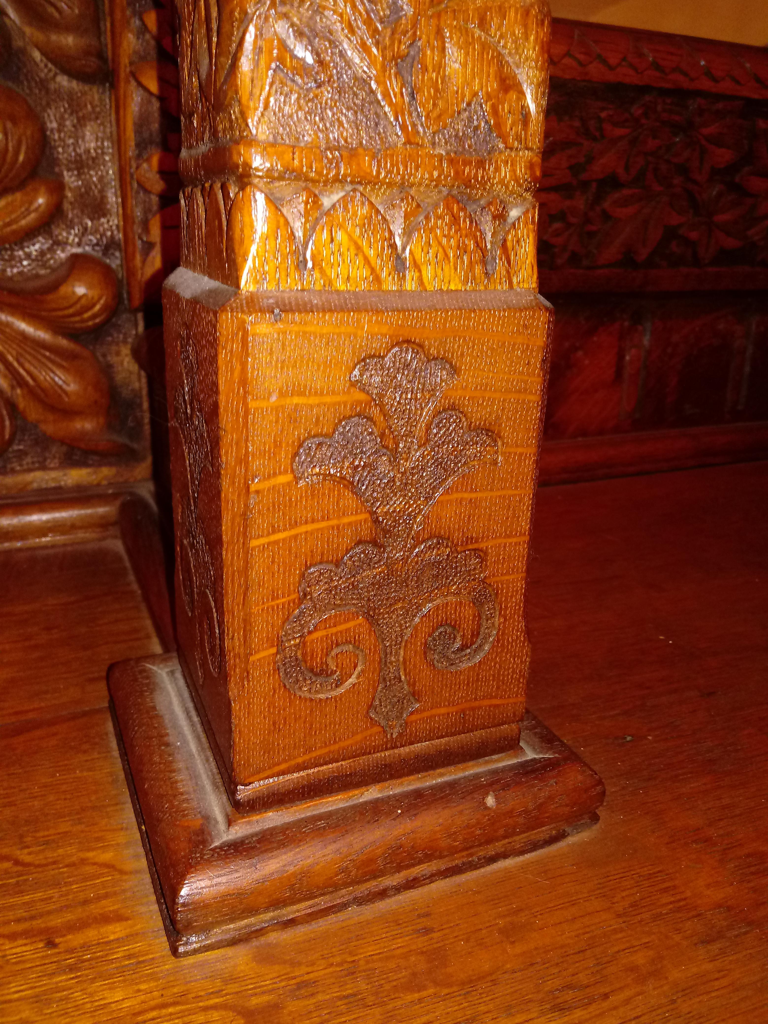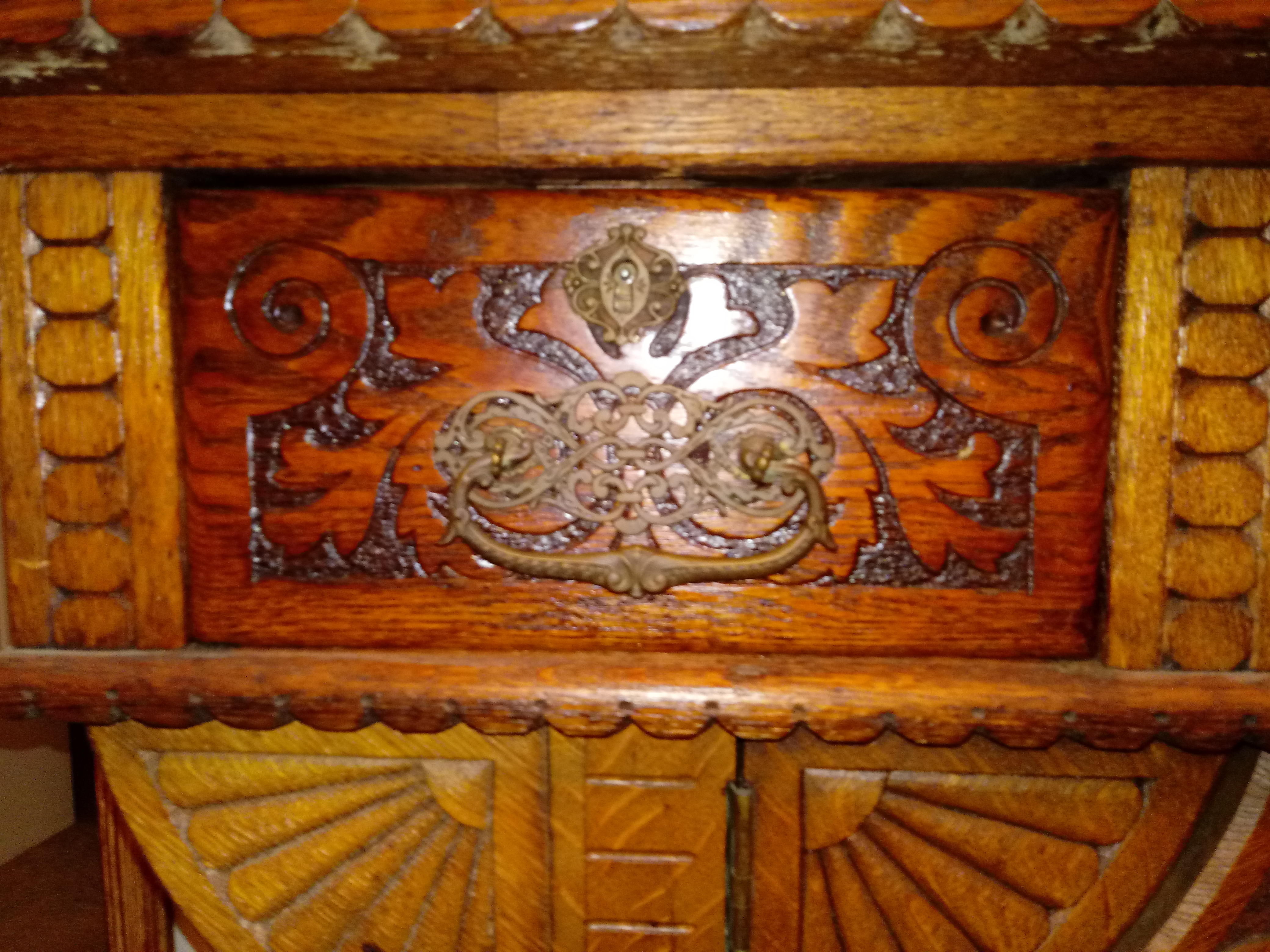 My father purchased this piece at an auction in the early 1980's. I'm not sure exactly what he paid for it, but I believe it was several thousand dollars. He said he bought it because he thought it looked like something that came out of a medieval castle. He told me he believed it was possibly a commissioned piece for a wealthy family, possibly royalty, with the work being performed by a skilled woodworker(s). It features 2 matching gargoyles on the top. It also has 2 beveled mirrors. There's also a small area on the design at the bottom of the left side post that was apparently left unfinished for "spiritual" reasons. The 2 front doors open up to a storage space. The board at the bottom of this space can be removed, and there's another "hidden" storage space beneath it. Any idea what the value is for this piece? Not planning on selling it. Just wondering what it might be worth. Thanks!