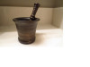 As stated, I found this mortar and pestle and en estate sale. I believe it to be brass. There is a design of a man with a staff going around the whole mortar. It seems to be hand carved because There is a lot of uneveness in the pestle. Unfortunately there aren't any names or anything on it to tell me more about it. If anyone could help me discover the origins and value of this piece I would greatly apreciate it.