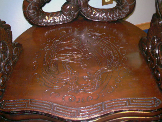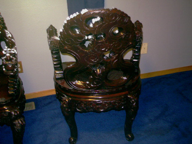 Antinque Hand Carved Dragon Chairs - 2. Dark Cherry (?) wood.