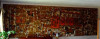 The item is an elephant that seem somewhat hand carved and crafted with hand embedded beads and cut glass in the shapes of squares and diamonds all throughout the model. The top of the elephants back has been hand painted with a burgundy/reddish-brown color in which mini glass specs and beads has been delicately attached. Surrounding the beads and glass is an inlay of a non-metallic chain that illustrates gold toning. Around the eyes seems a coiled blue material that is also non-metallic yet shimmers like metal. The texture of the wood material is somewhat glazed or lacquered with few flaws as if hand made. Beneath the elephant on its tummy is a raised inscription of: "A INDIA" surrounded by a circle mark.