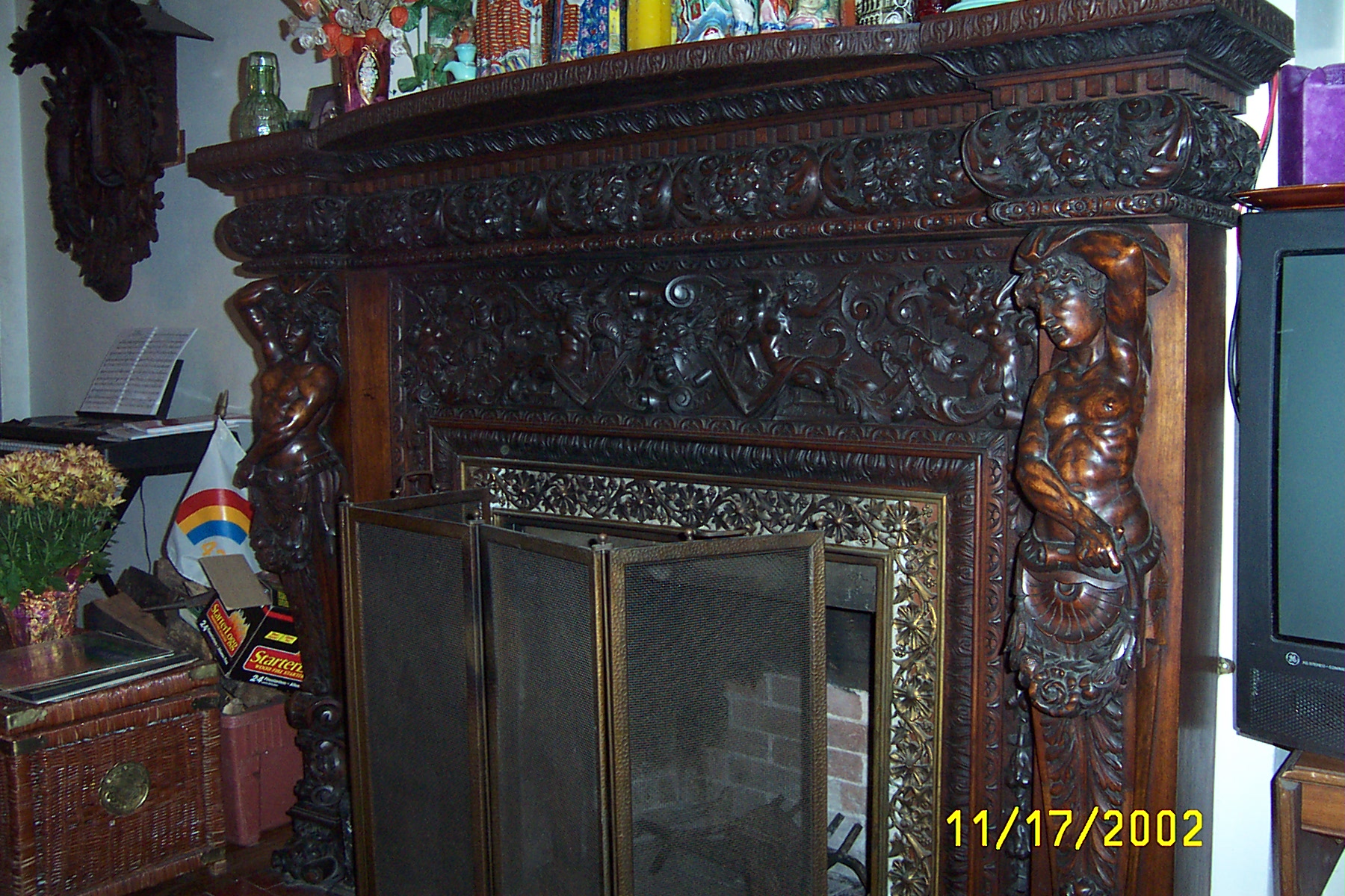 Previous Home owner was traveling in Europe in the 1940's. Came accross this Mantel in a Villa in France that was going to be demolished. He Purchased the Mantel and had it brought back by Ship to the Boston Area to it's present home.