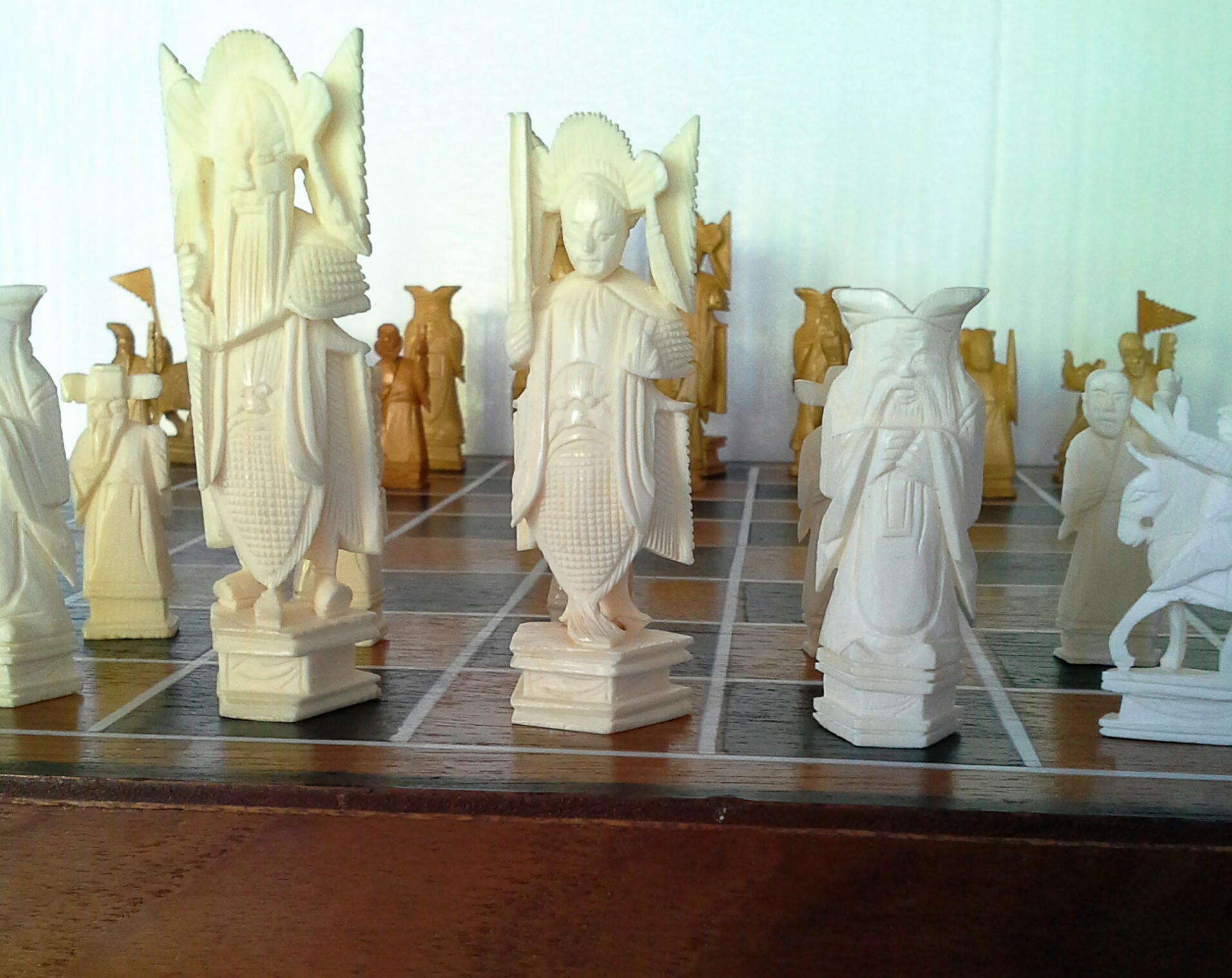 Not sure exactly what year. I know it was passed down in the late 60's. Im not sure on anything before then. I am 99% positive they are real ivory. I have examined with a loupe and all the identifying markings of ivory are present. I have found an almost identical set at an online auction. Only detail given was the late 1960's. There are so many different oppinions on the value of something like this.