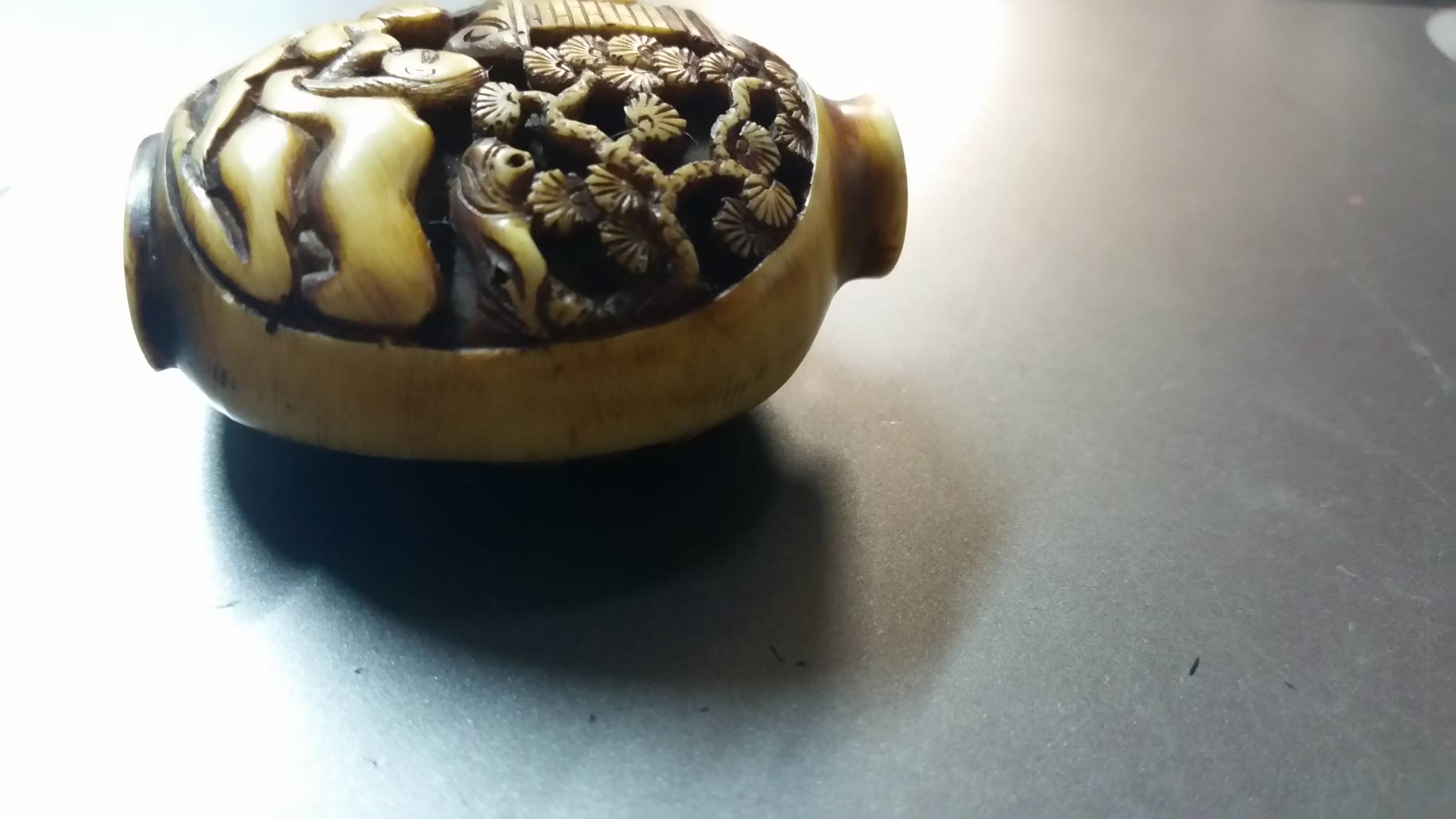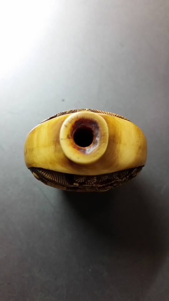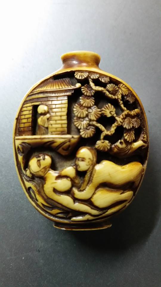 I have this hand carved snuff bottle that I am not sure if it is ivory or bone. It looks to be hand carved and of a very sexual nature and I can't seem to find any others like it. I don't know anything about ivory or bone so I don't know how to distinguish which one it is. Any help or input on this piece would be greatly appreciated!
