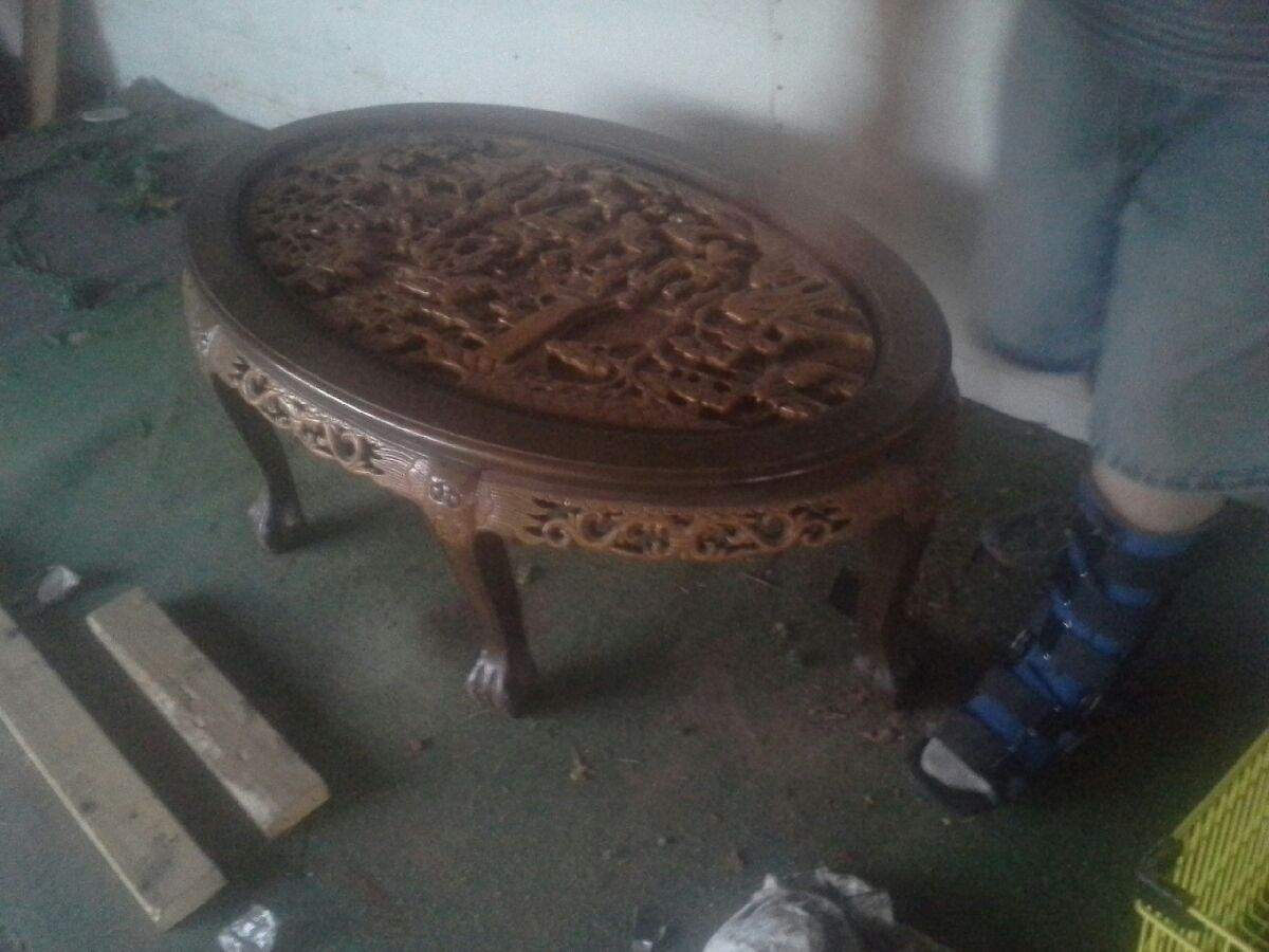 Oval 6 legged hand carved antique Japanese coffee table used condition but in tact