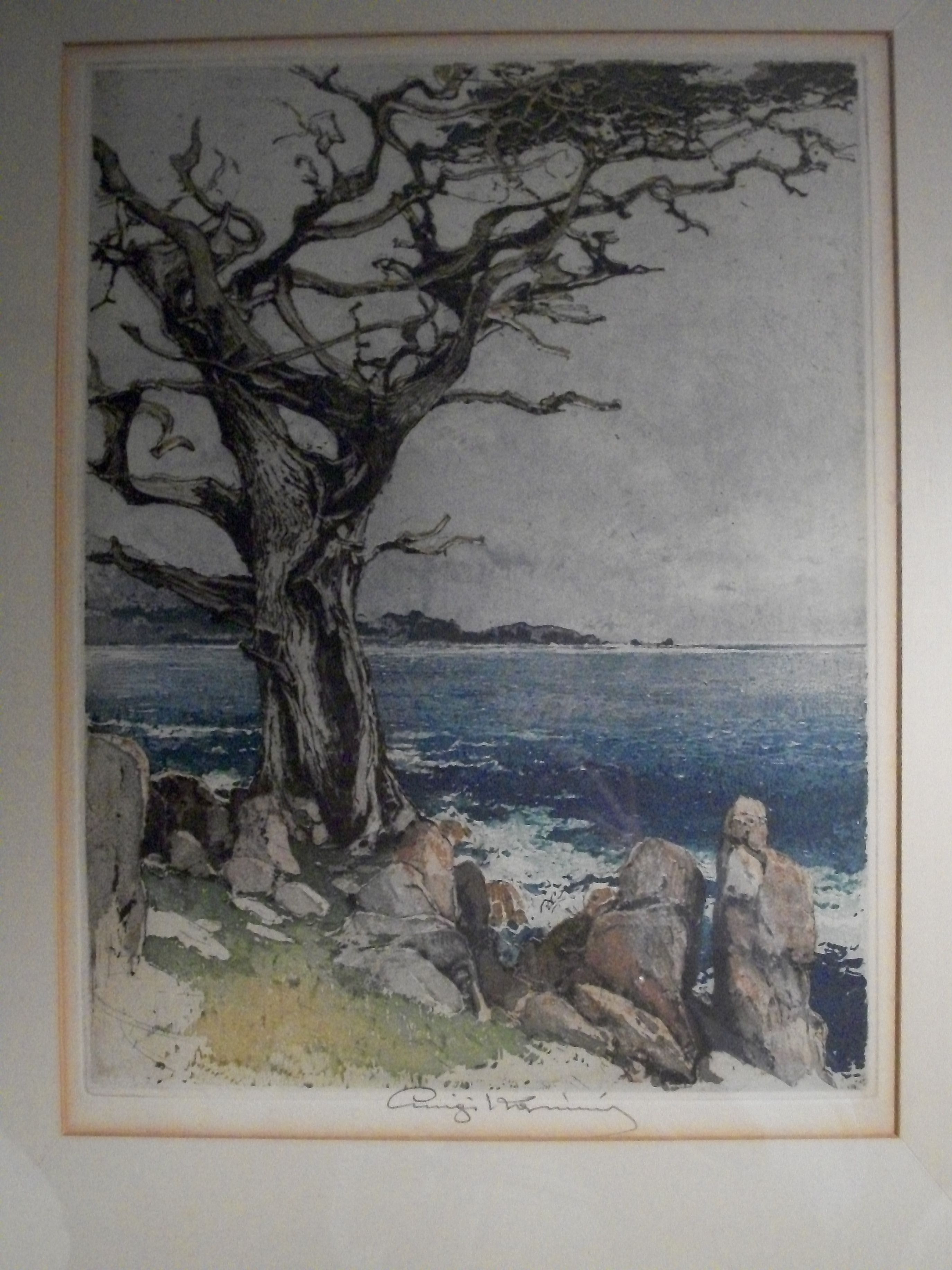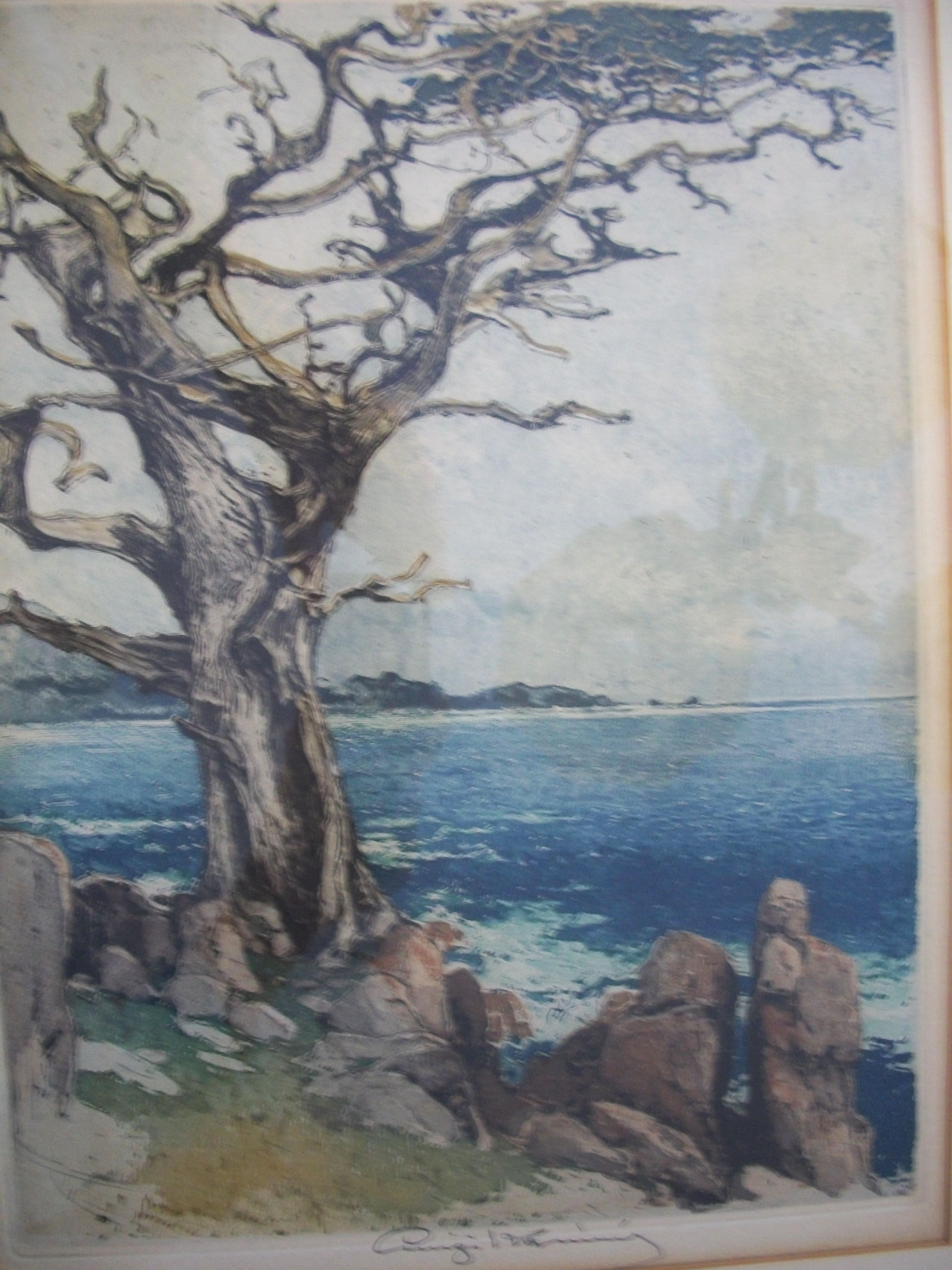 Gorgeous Hand Colored Etching of what I assume to be the Lone Cypress in Monterey California.