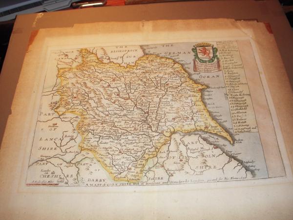 hand coloured map of Yorkshire with its Divisions and Hundreds printed for Ric Blome
