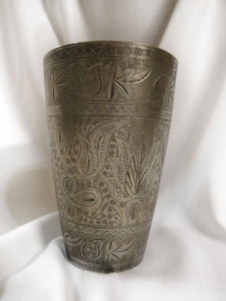This is a 60 years old pakistani hand made bronze glass. It is in excellent condition.
