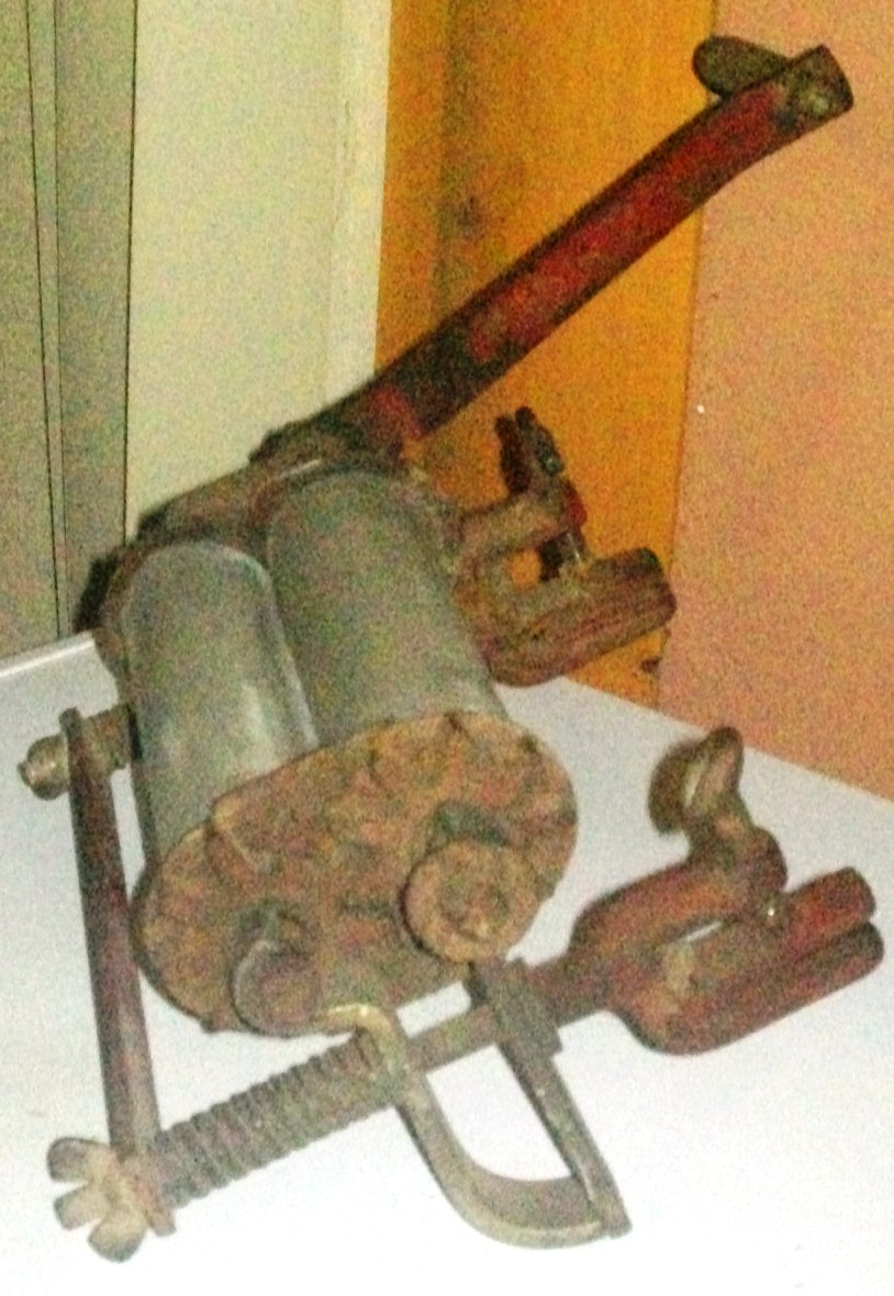 Found in Hitchita, Oklahoma, 'Creek Country'-in Great Grandmother's old home-place, in the barn. She had said her mother owned it. This piece would be 'clamped' onto the side of a large barrell, where they would have washed their clothing and 'cranked' the clothing through this wringer to wring them out. My great grandmother would have been 112, if she had lived.