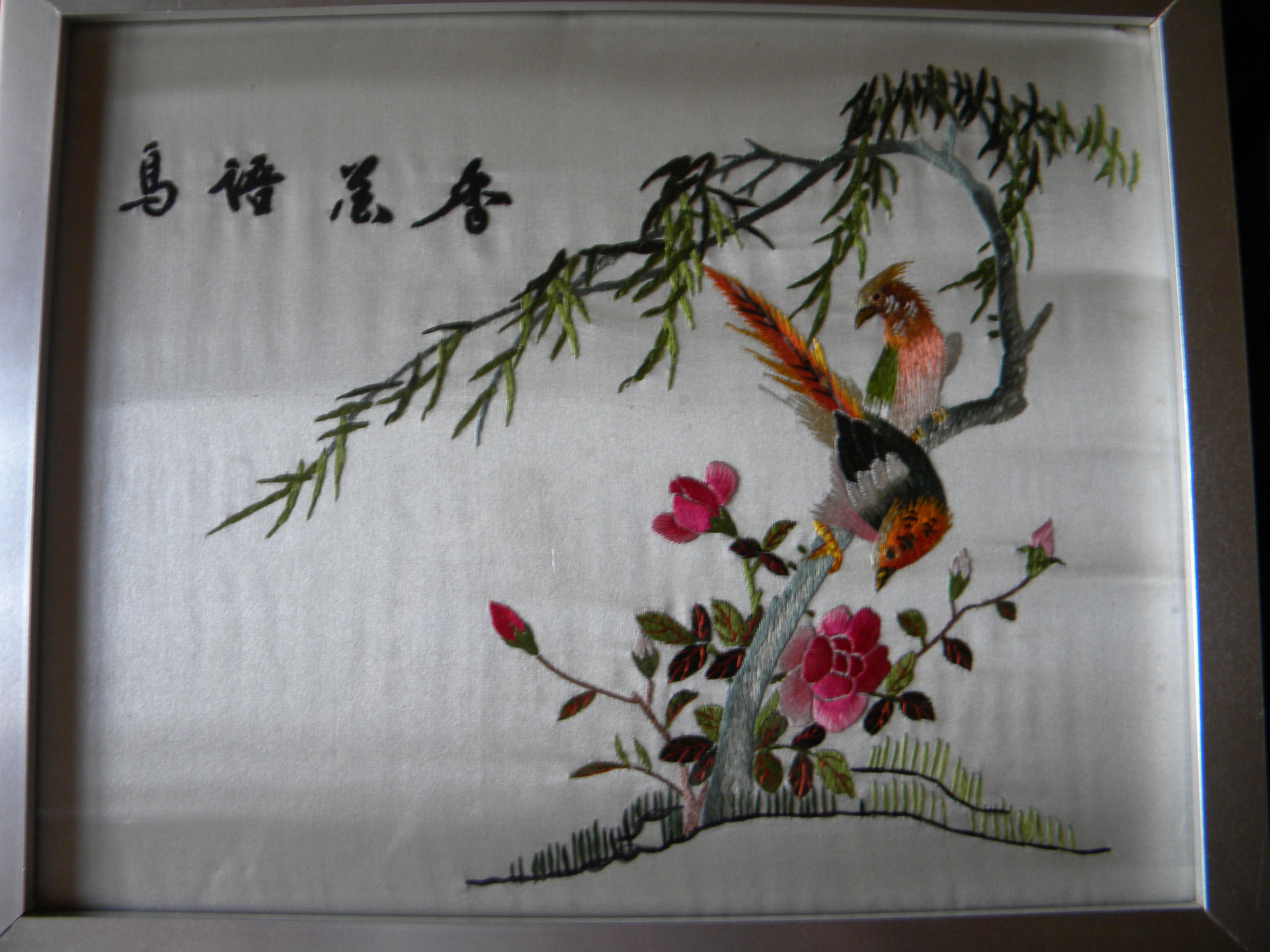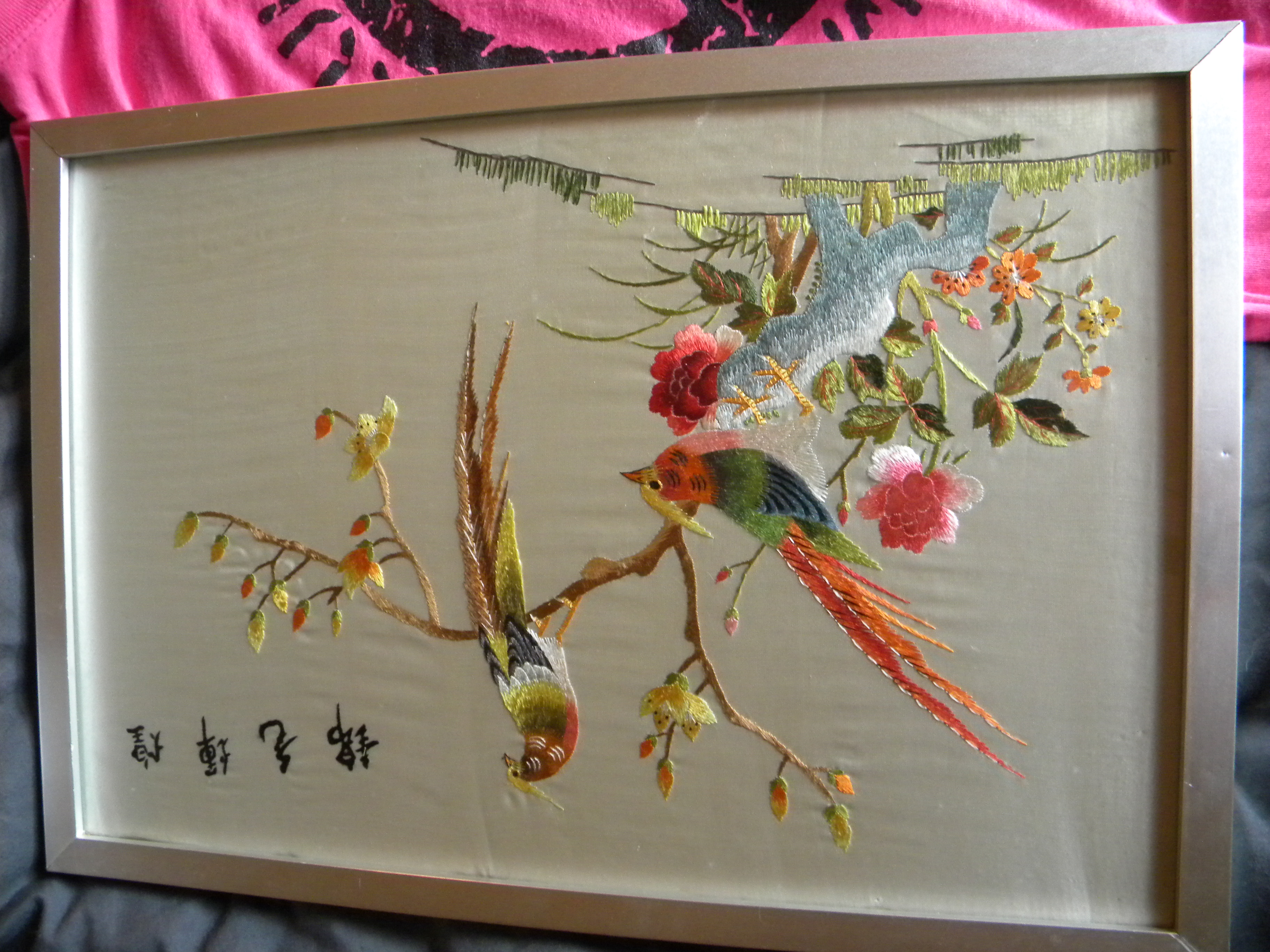 Two beautiful hand embroidered silks. I dont know much about them. The smallest is 12x10 the medium, 18x12