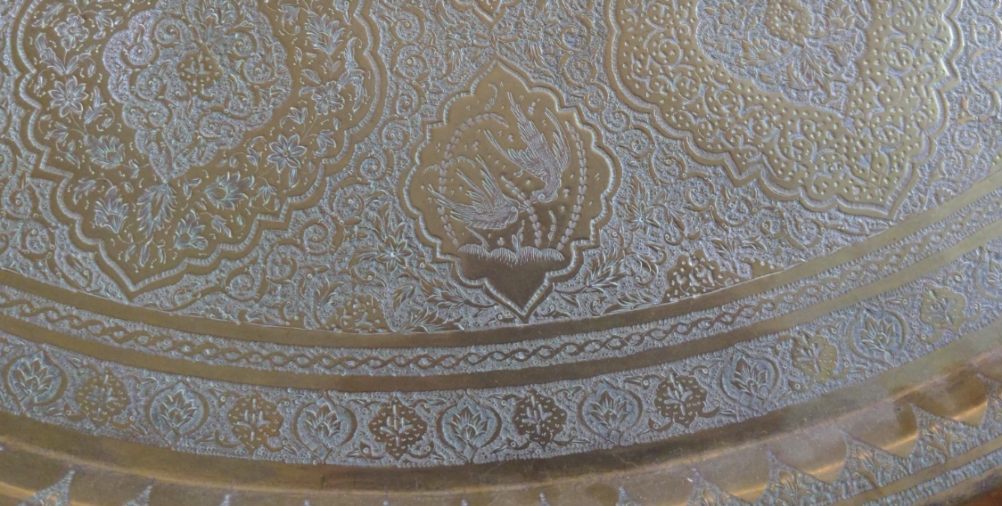 Re: Hand engraved round brass tray (38”)