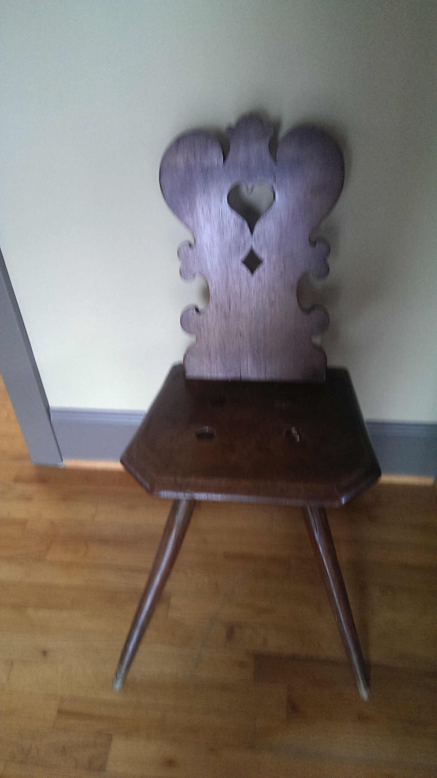 This chair originallyt belonged to my grandmother. The story goes that it was in her house growing up. She was born in 1892 in Basile, Switzerland. Her parents had immigrated there from Alsace Lorraine. They spoke French, my grandmother, growing up in Basile, spoke German.