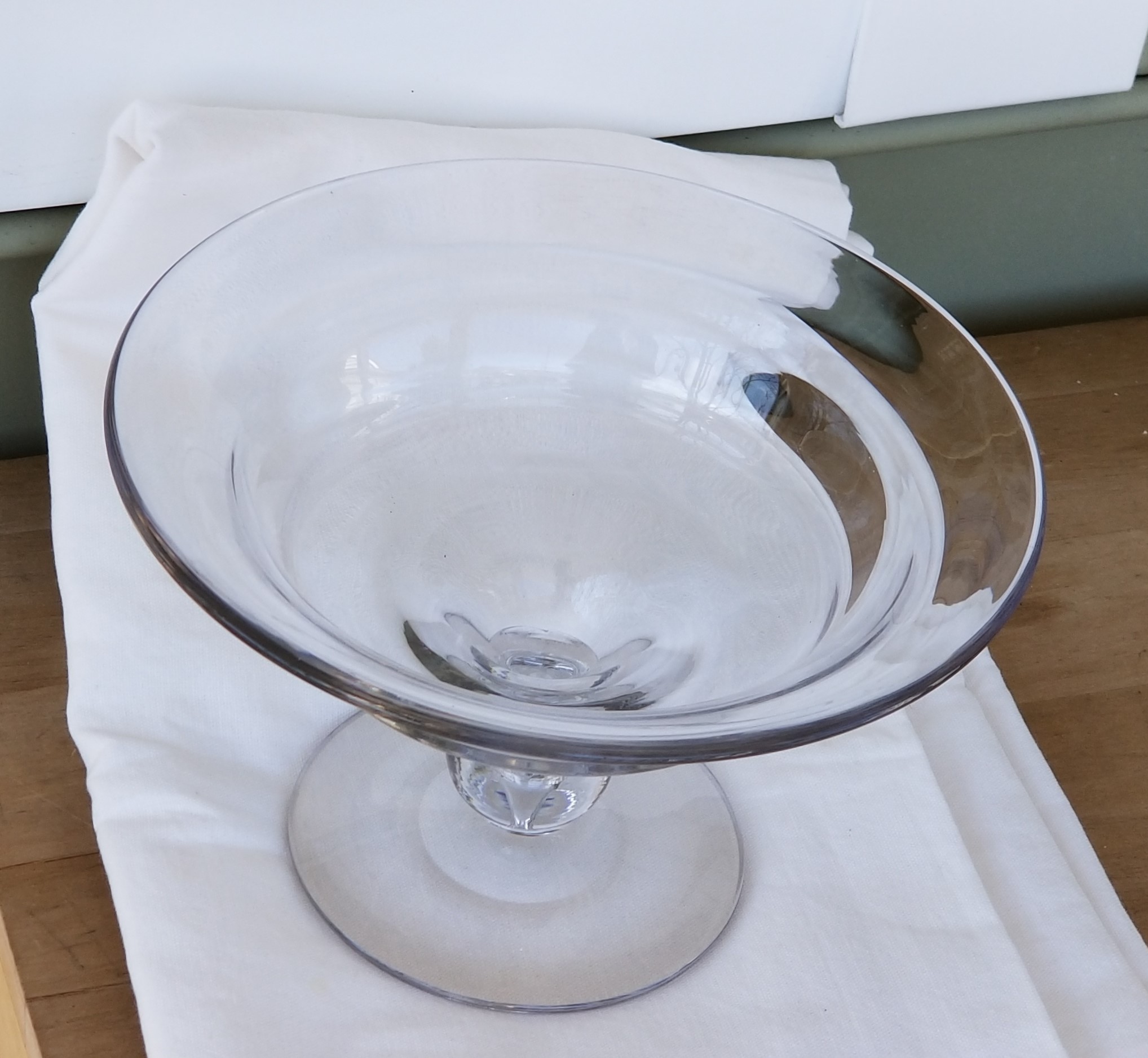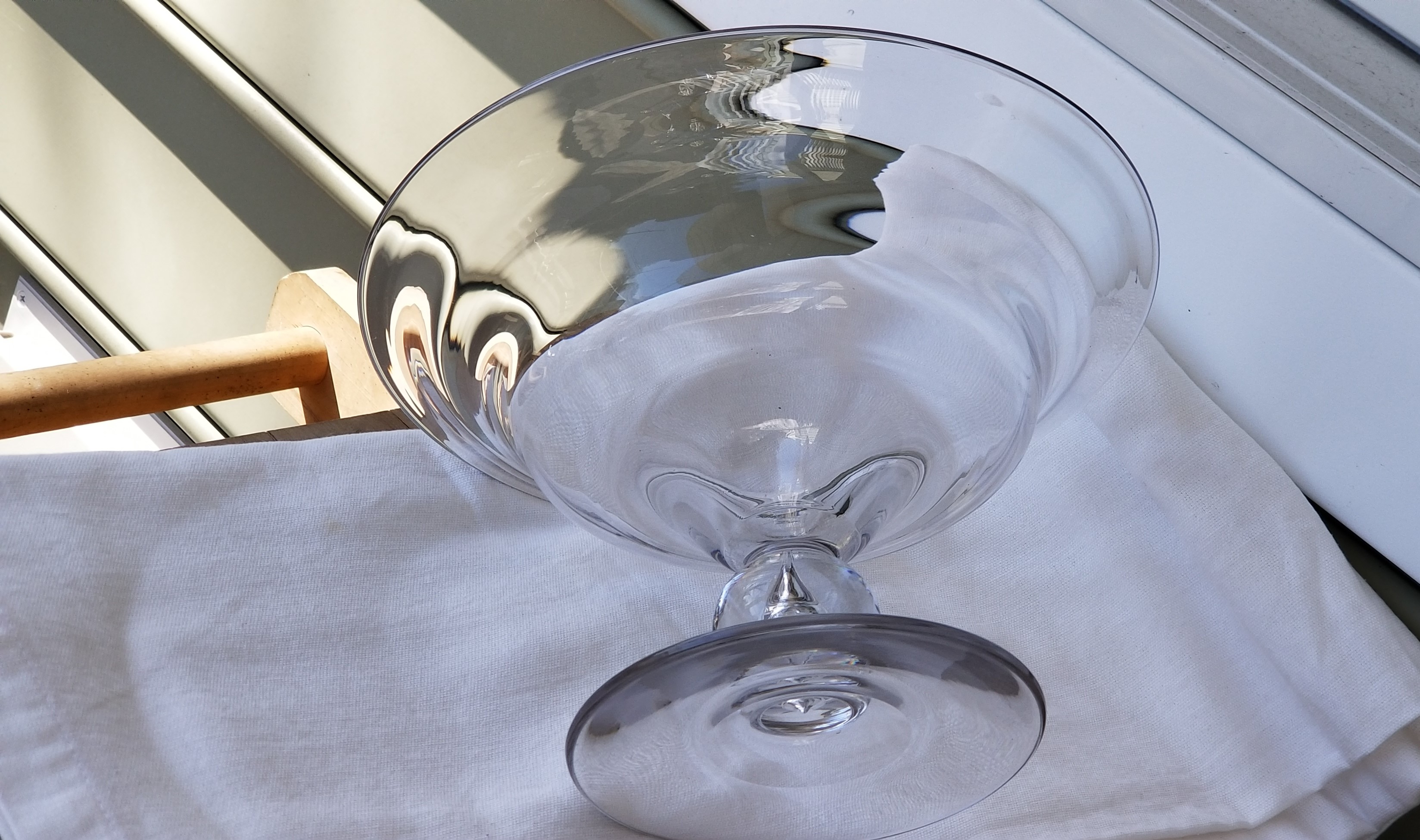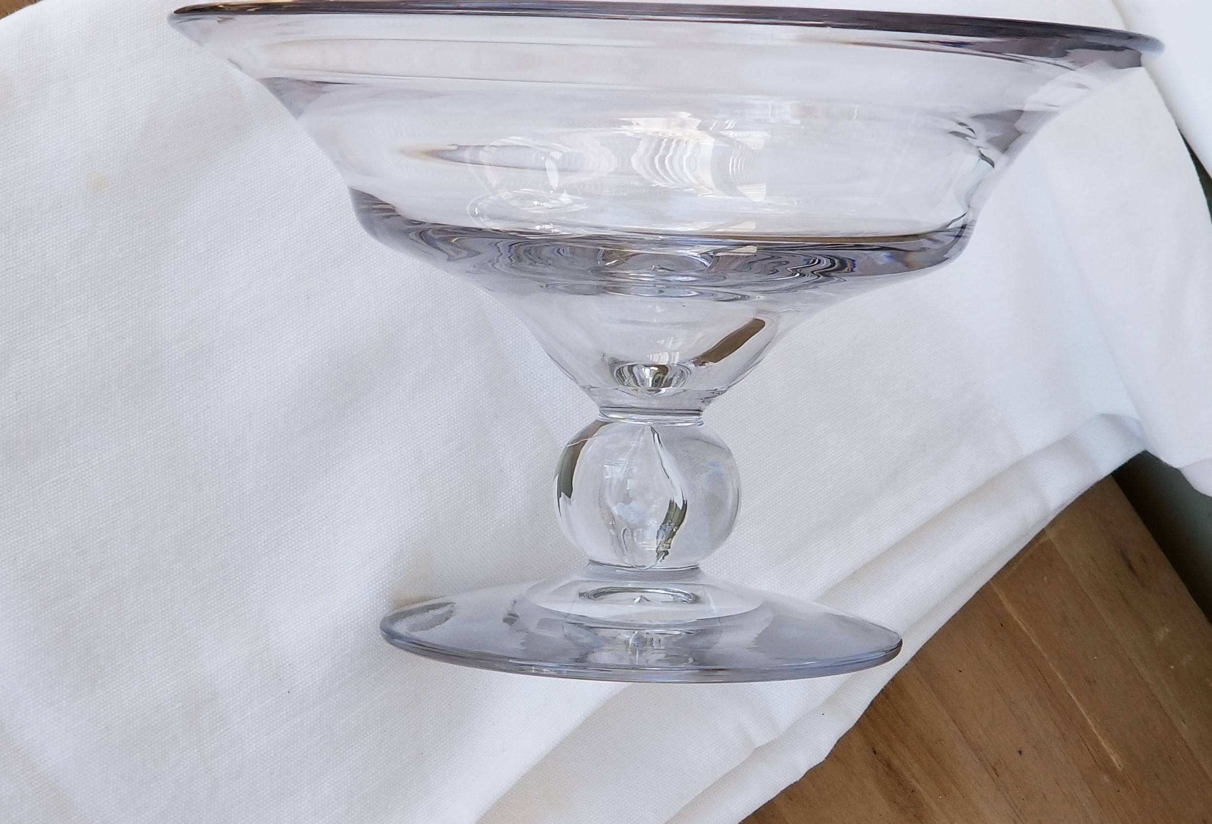Hand made crystal pedestal bowl with teardrop pedestal and polished pontil