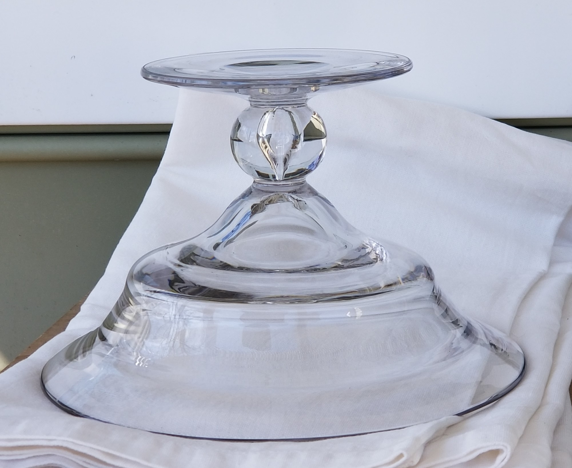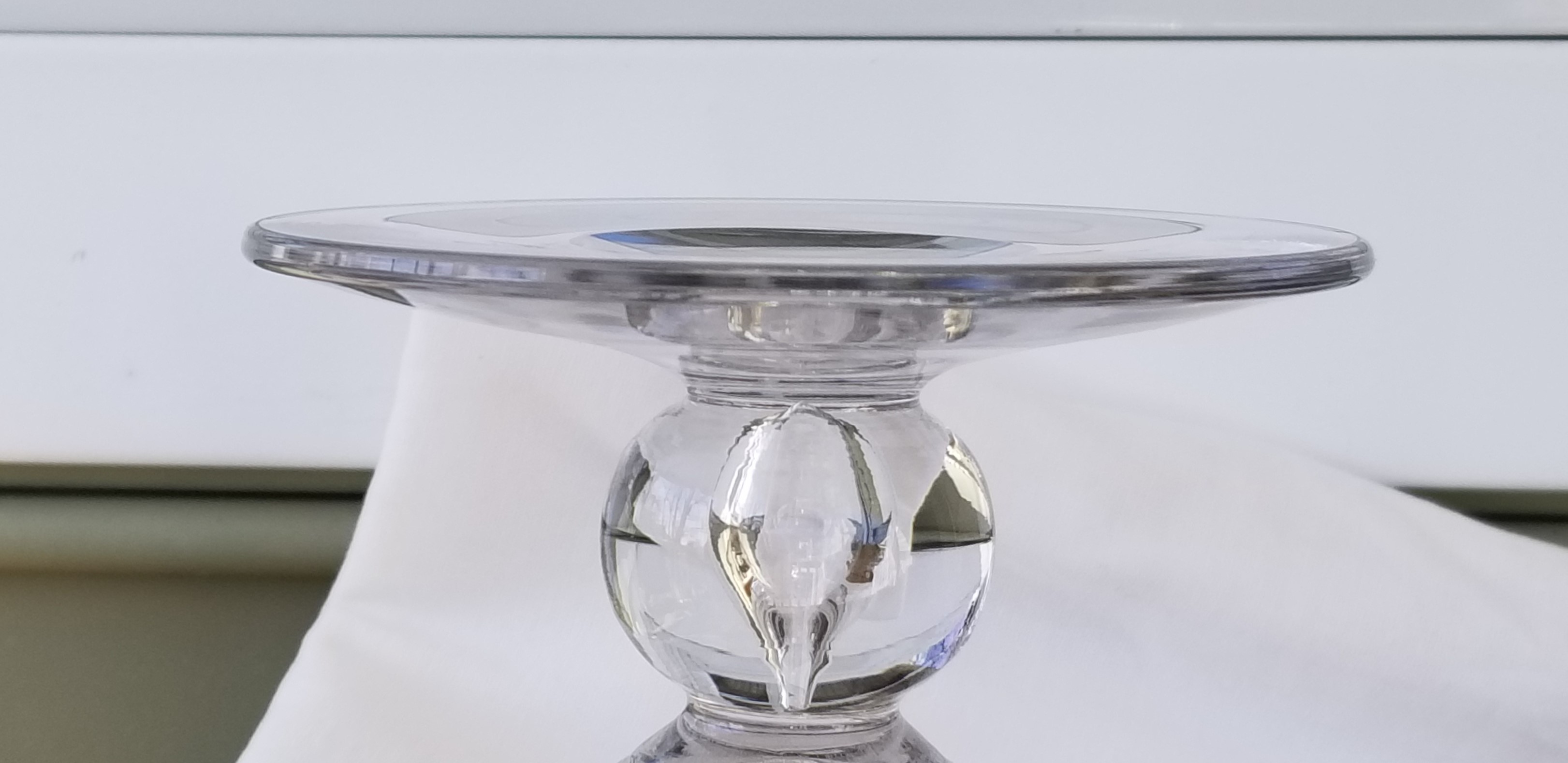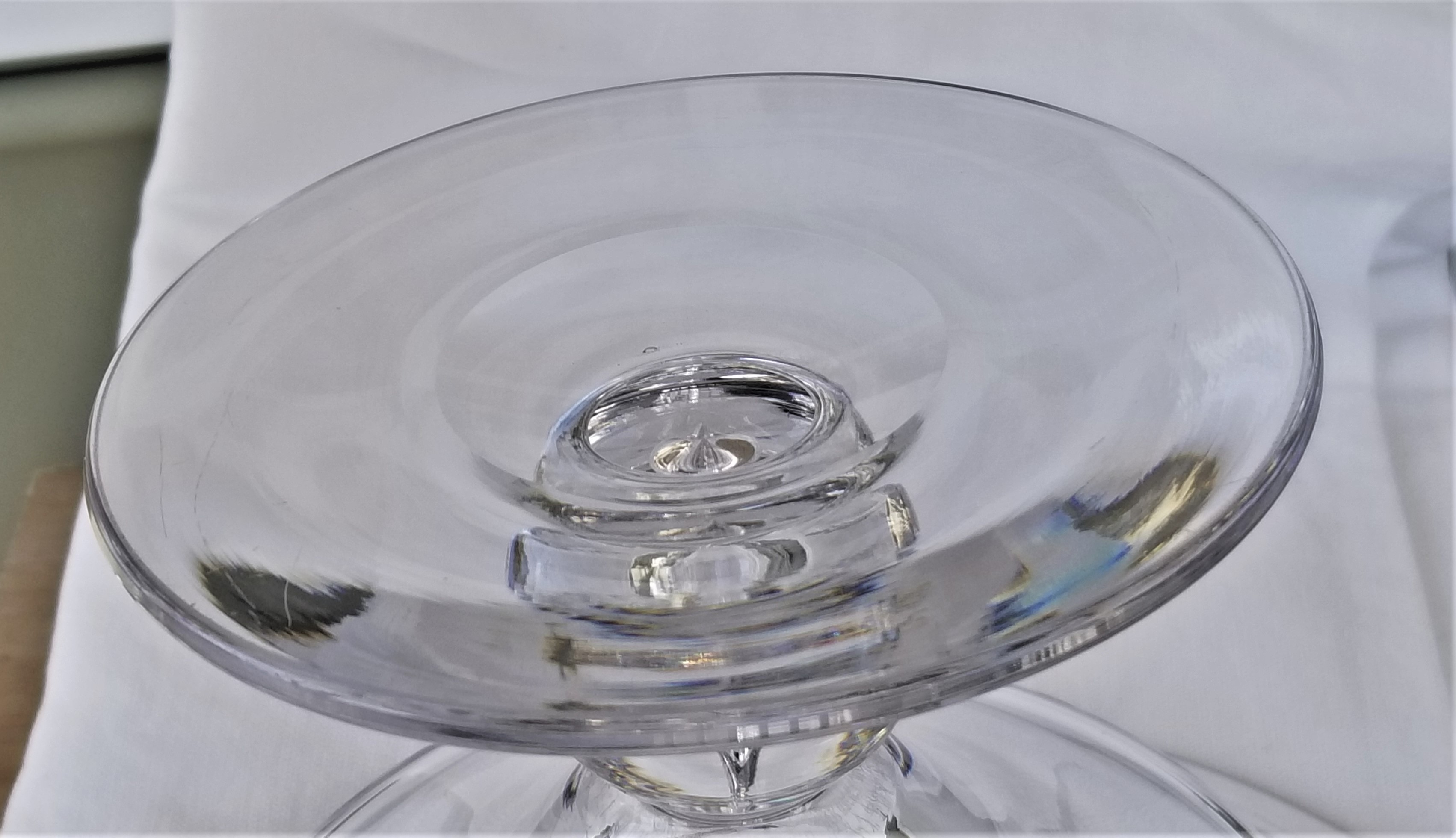 Hand made crystal pedestal bowl with teardrop pedestal and polished pontil