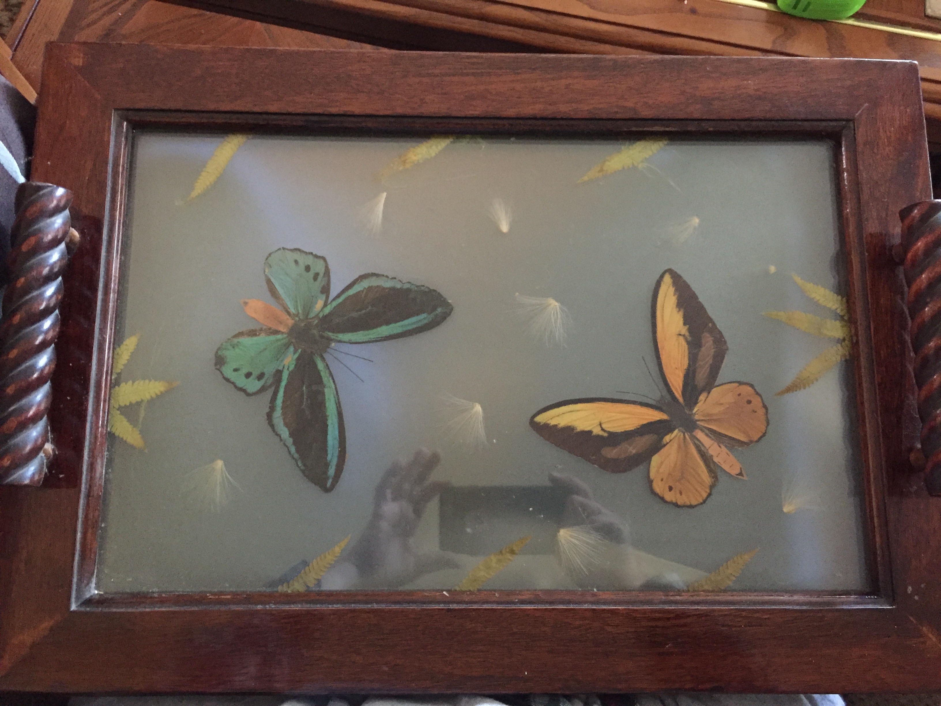 Hand turned handles. Double pane glass. Ferns and milkweed? Pressed between glass