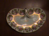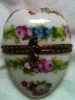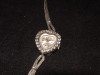Heart shaped hand mirror with blue rose on back. No distinguishing marks.