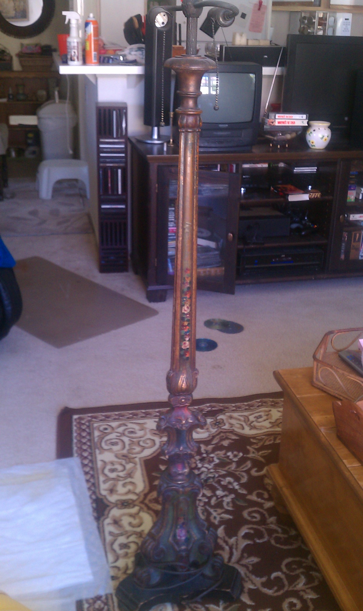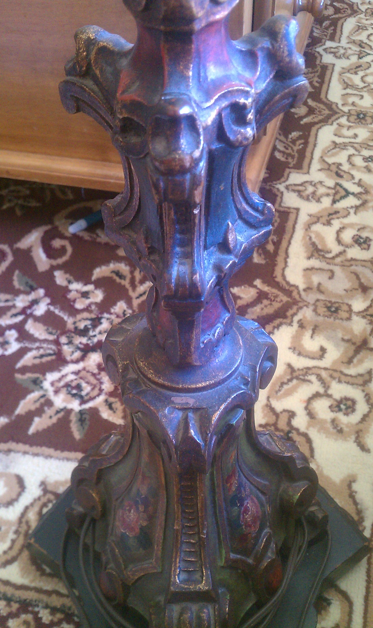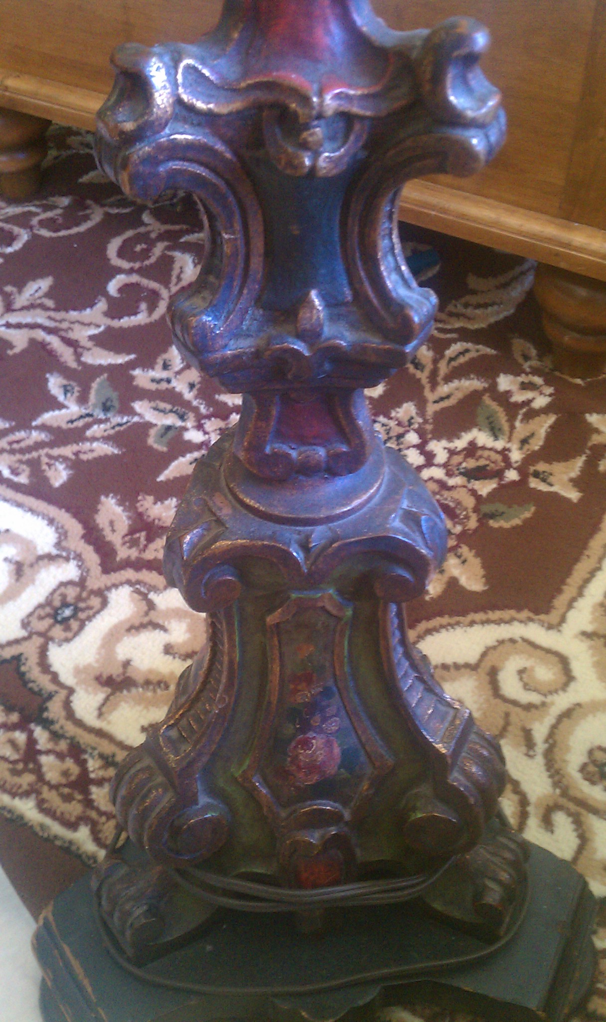hand painted carved wood lamp