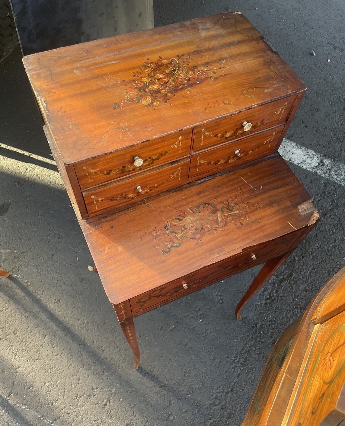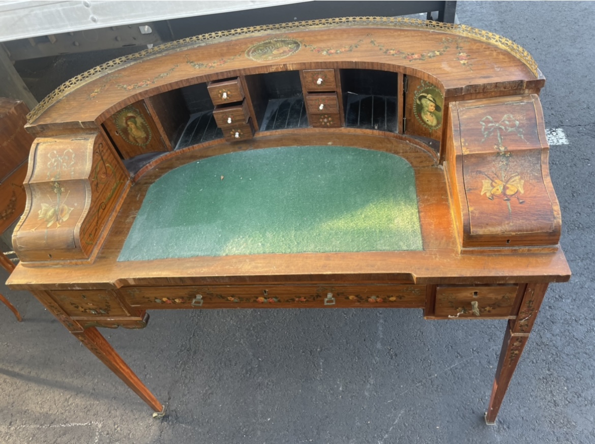 I’m new to collecting and acquired this furniture set, I don’t know the era or time frame which is what I’m trying to figure out. I do know They are hand painted and there are no markings. No screws were used at all, The nails are all very small and thin, connected with wooden pegs. the pieces are all pretty light weight.