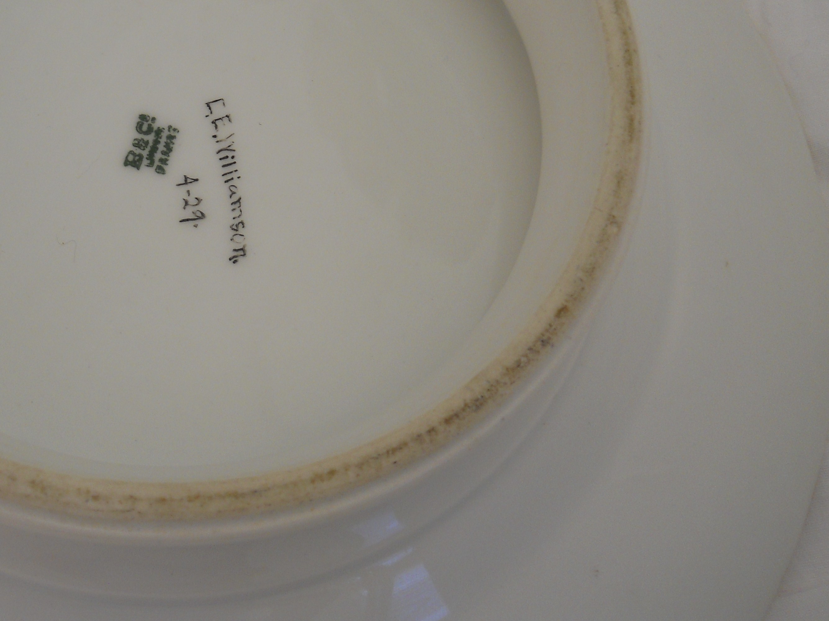 We know nothing about it other than it is marked "B & Co. Limoges France" with the artist's signature "C.E. Williamson." and the numbers 4-29 in his pen.