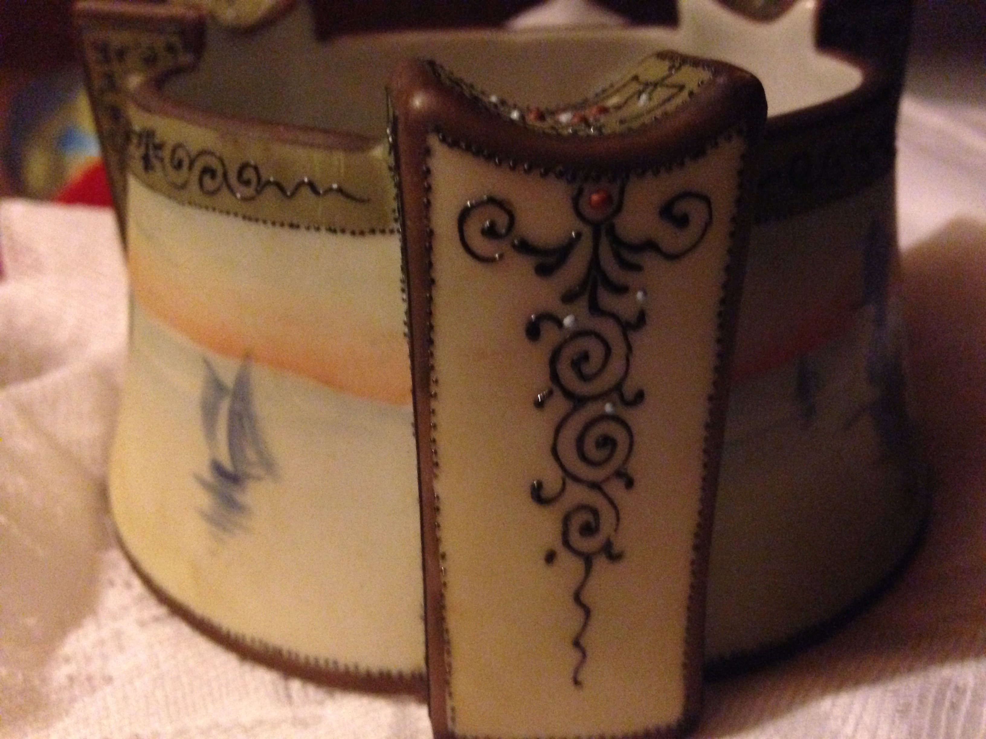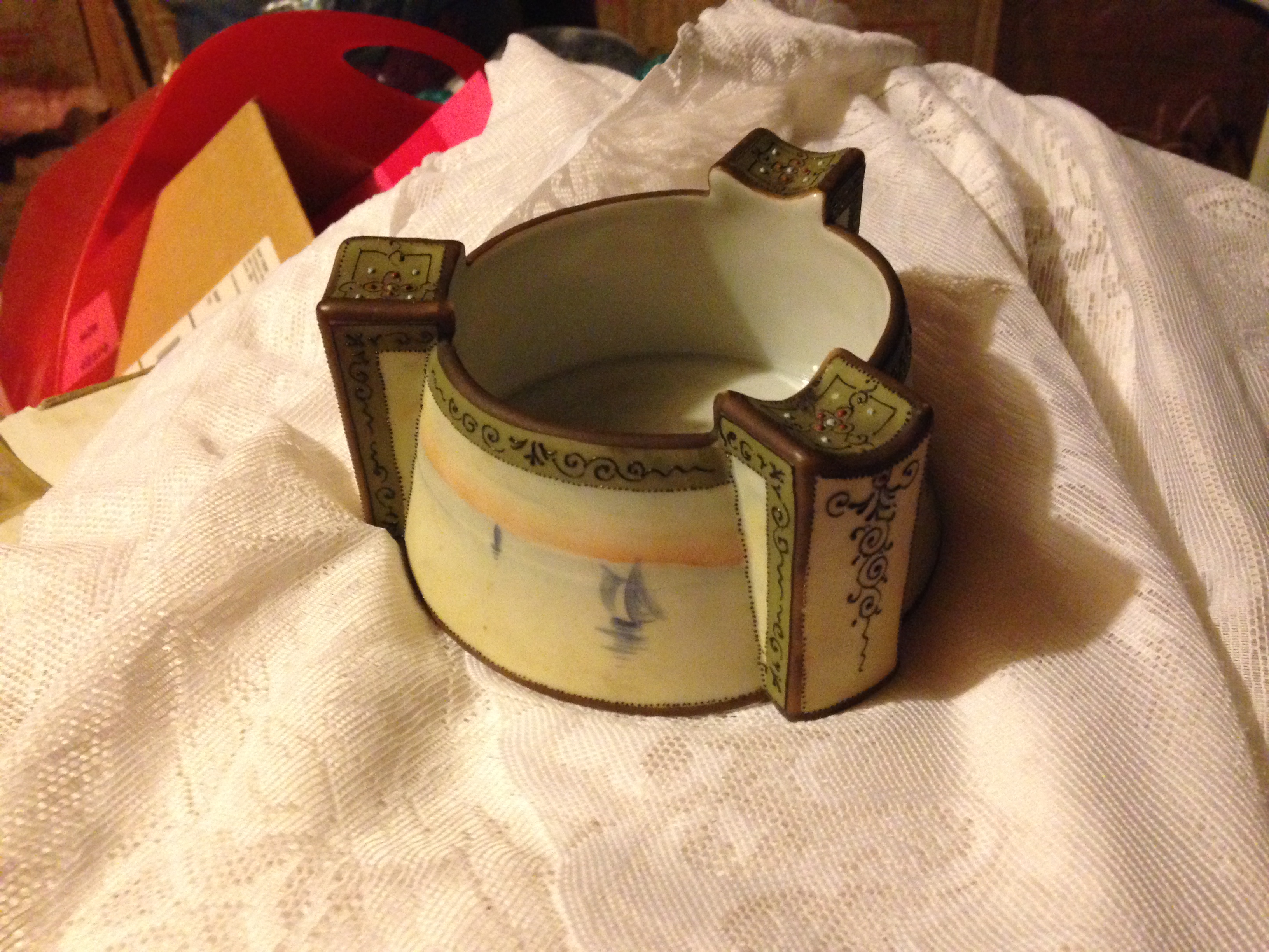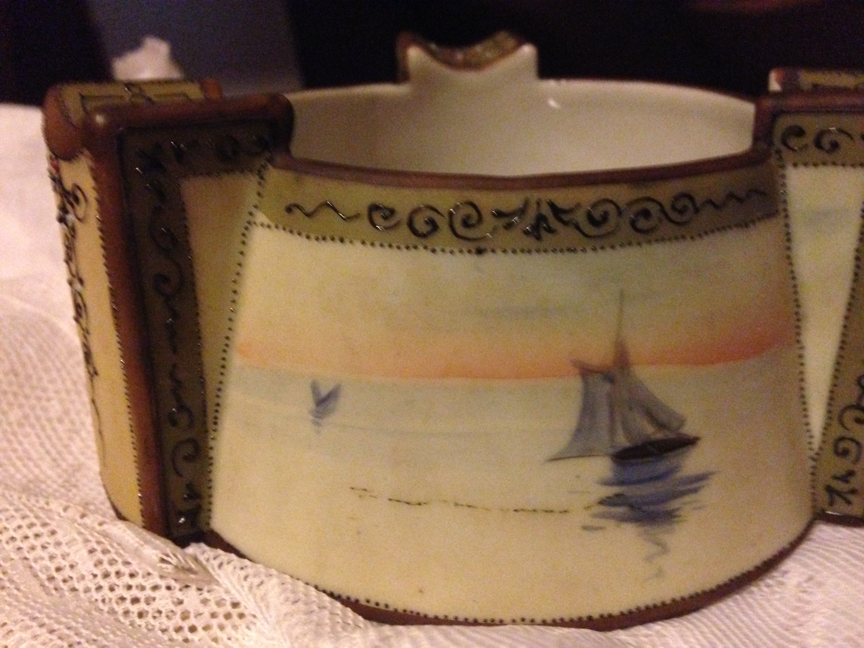 hand painted nippon on bottom, ships on sides,