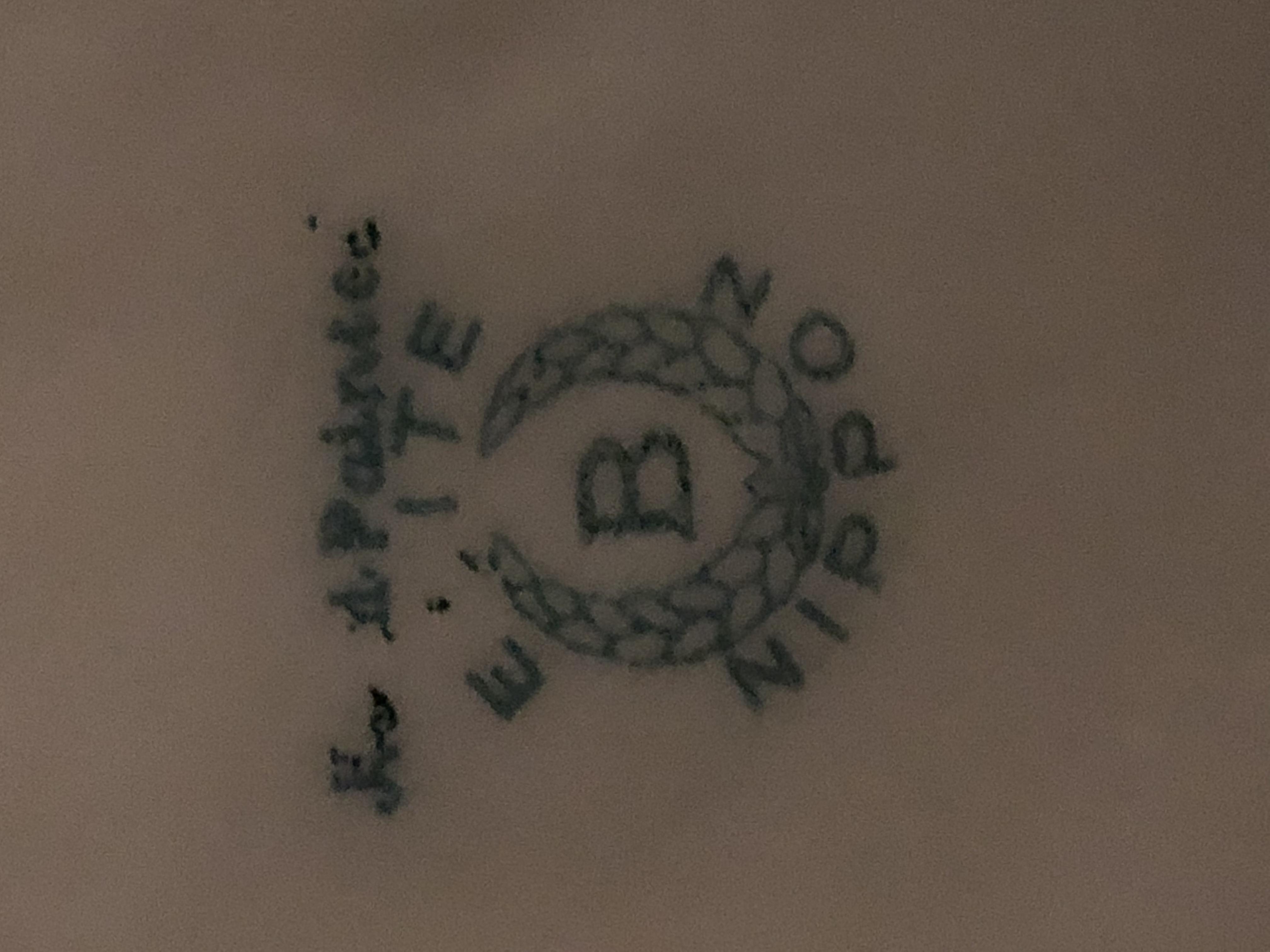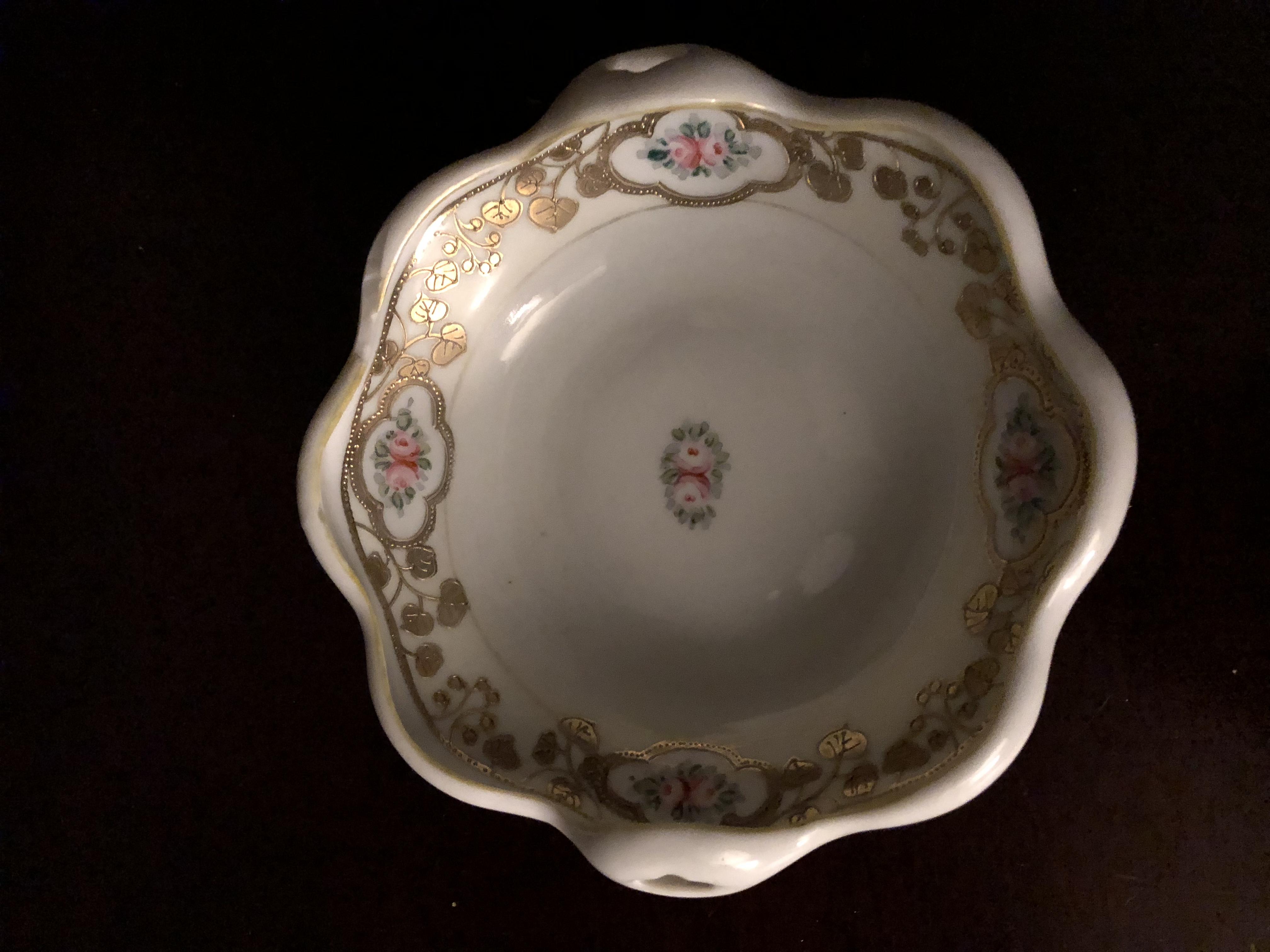 Dish with hand paint, gold trim. Marks on bottom are Elite B Nippon.