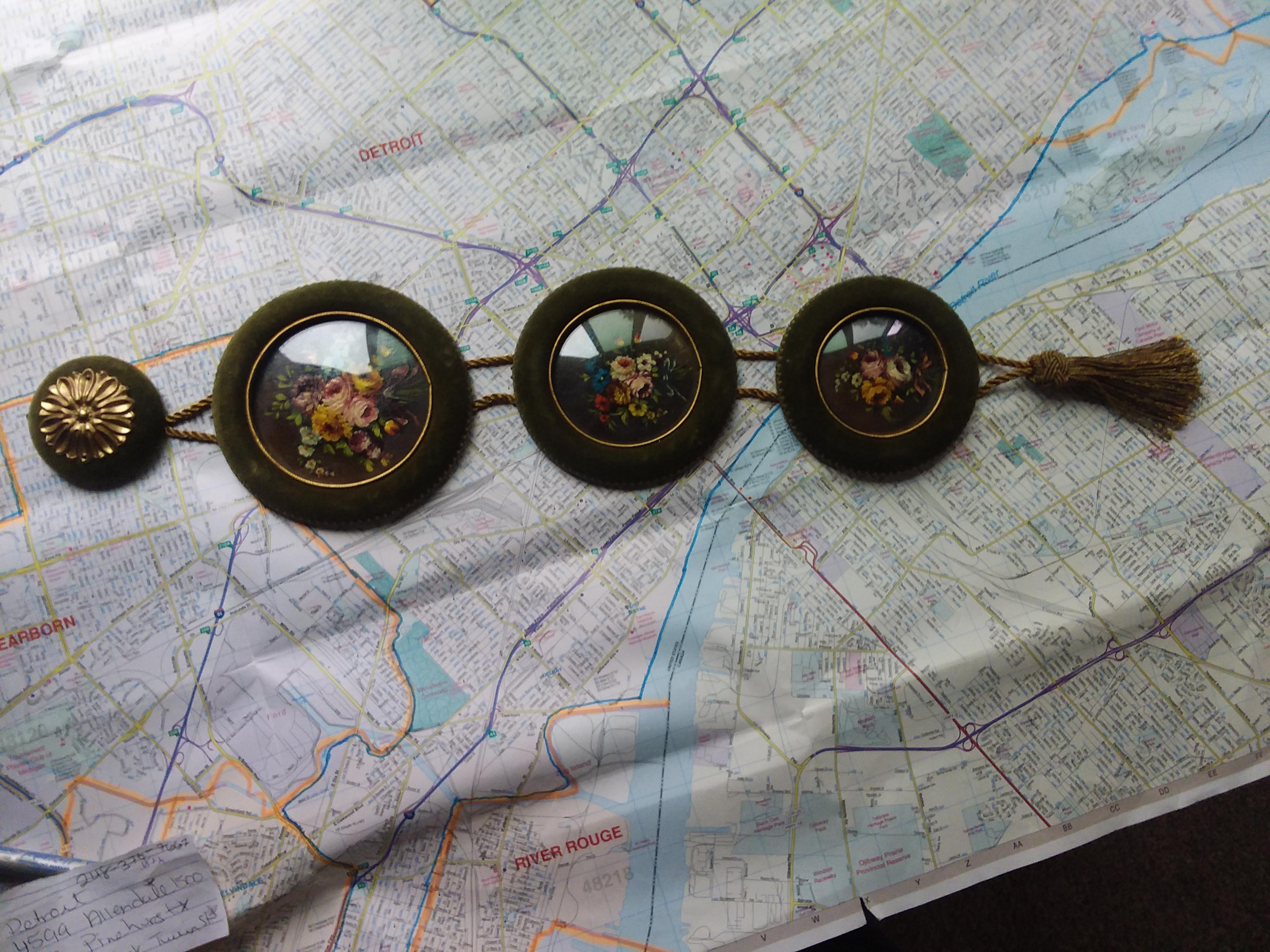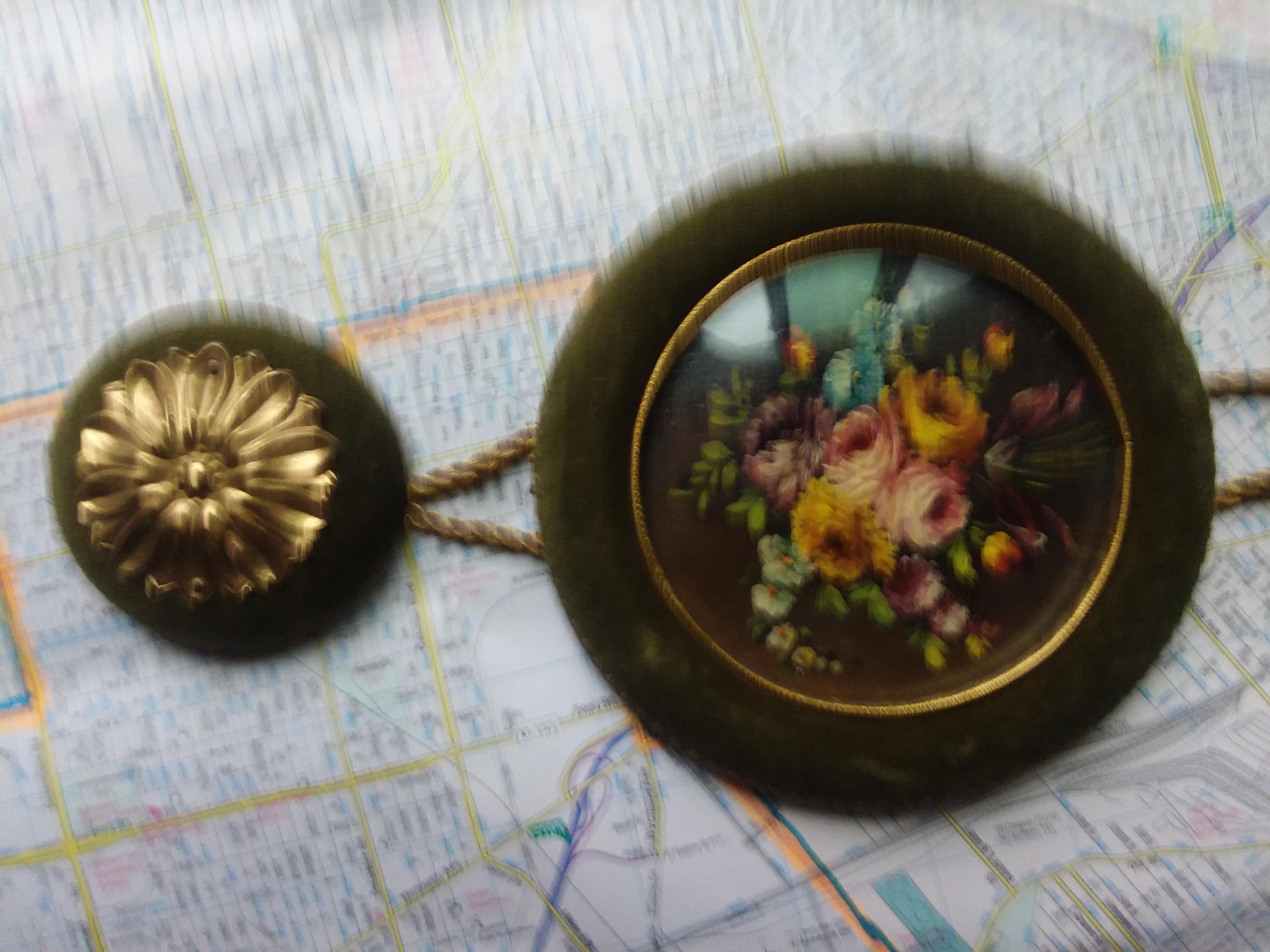 Oil paintings and green velvet frame