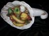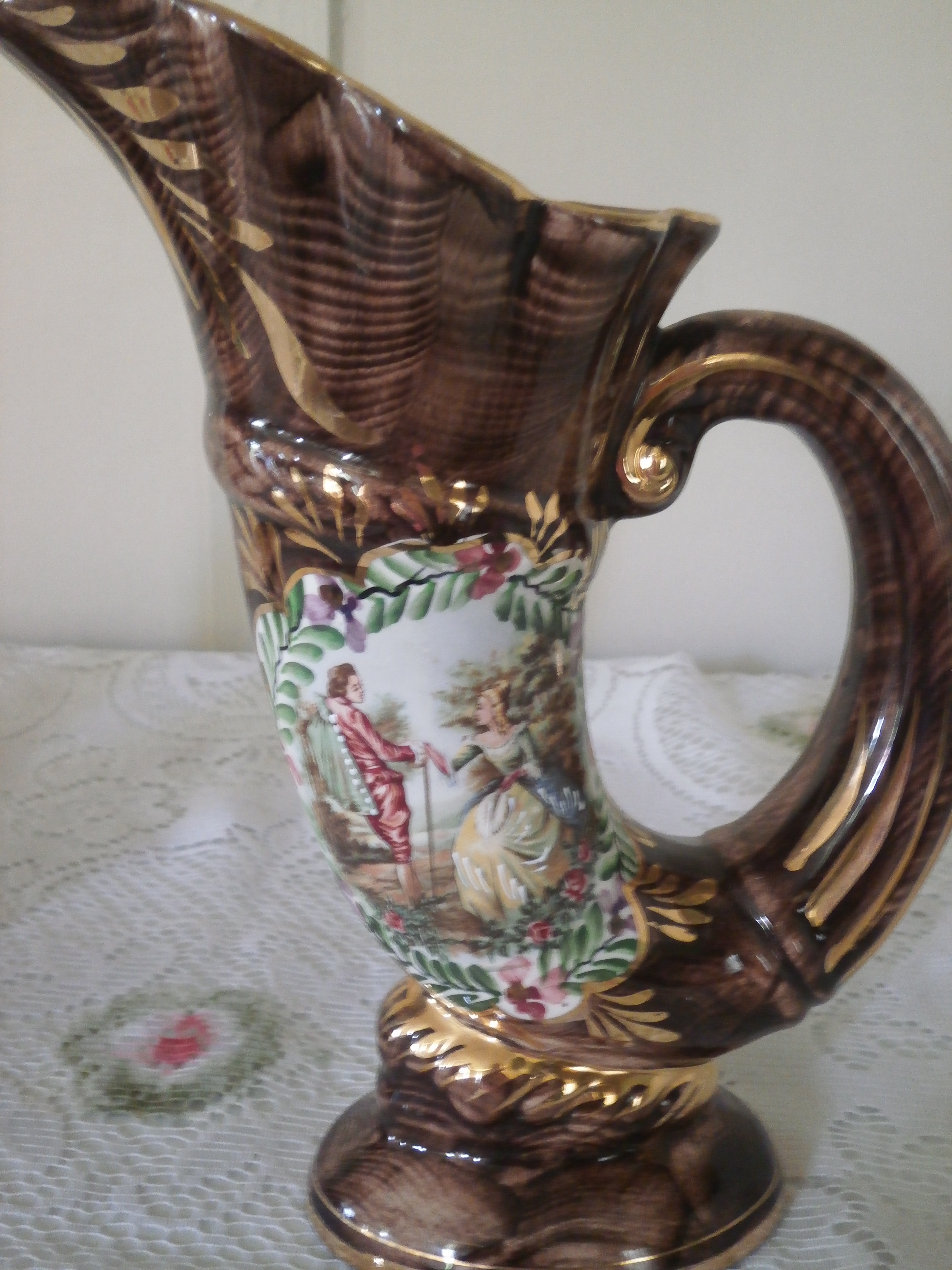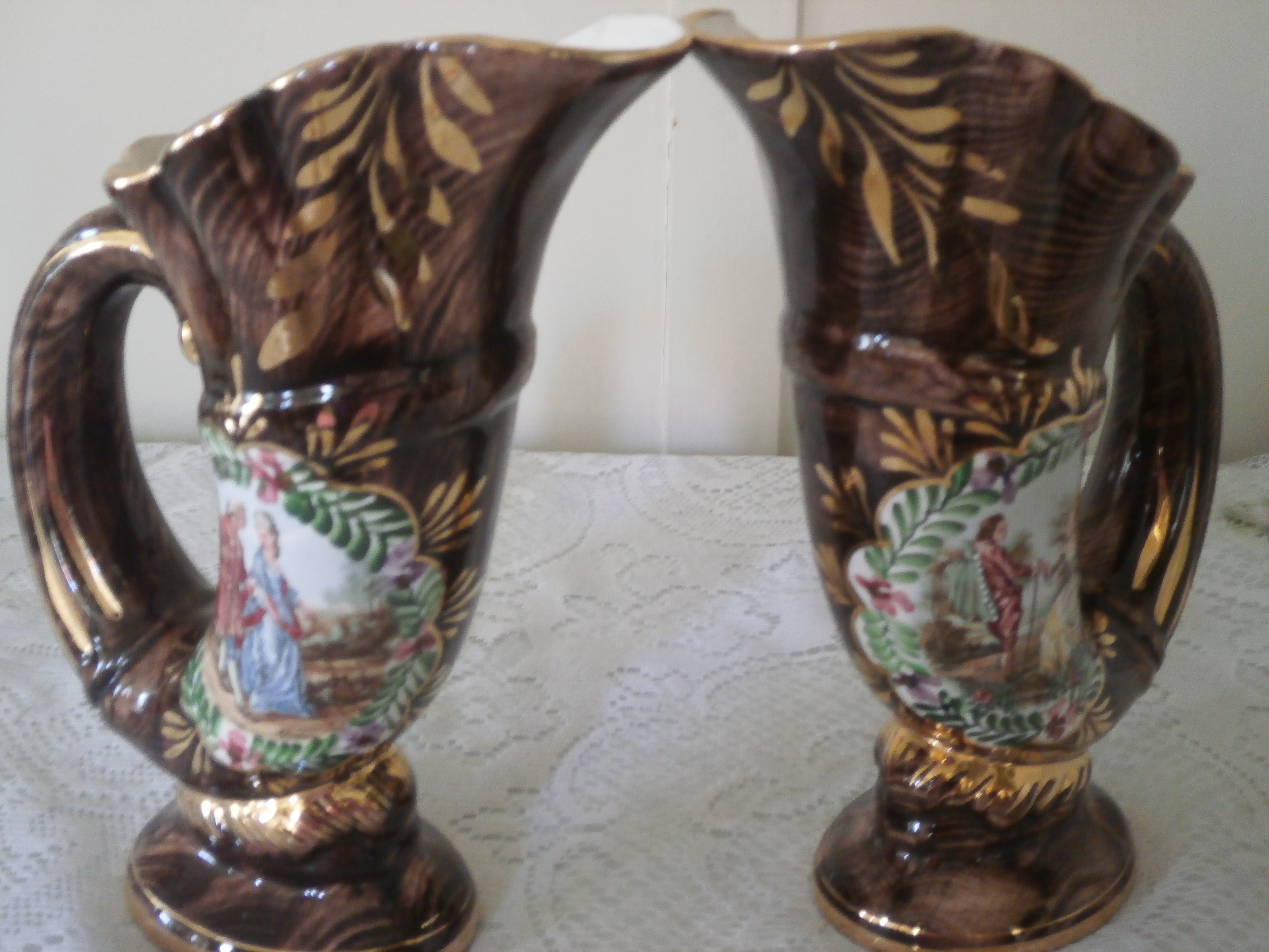 Hand Painted gold embellished old paris cornucopia horn vases marked 411 and 411 W n the bottom. Stands about 10" high.